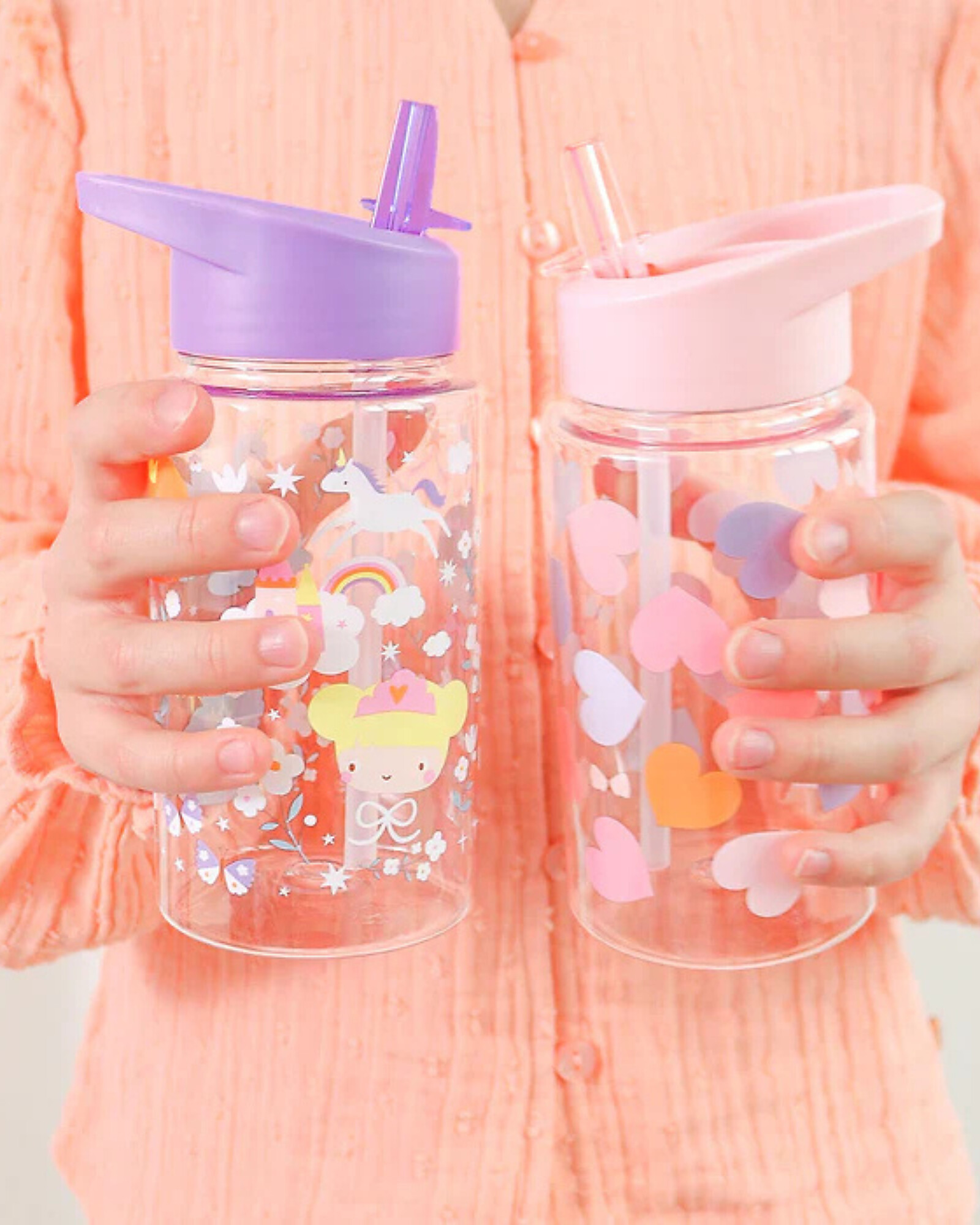 Disegnata dal marchio olandese A Little Lovely Company, questa borraccia con cannuccia così bella e pratica è fatta durare e innamorarsene! Sicura al 100%, è del tutto priva di BPA e dunque anche a contatto con bevande calde o fredde non rilascia particelle nocive di alcun tipo. Pratica e comoda da portare con sè, ha una capacità di 450 ml e un beccuccio che evita perdite o fuoriuscite di liquido ed è perciò perfetta per lo zainetto scuola del tuo bimbo!