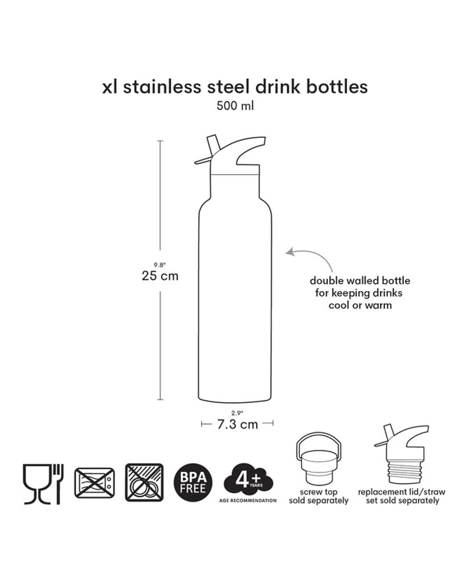 - Include: Tappo con cannuccia, solo per le bevande fredde. Il tappo in acciaio inossidabile per le bevande calde è venduto separatamente
