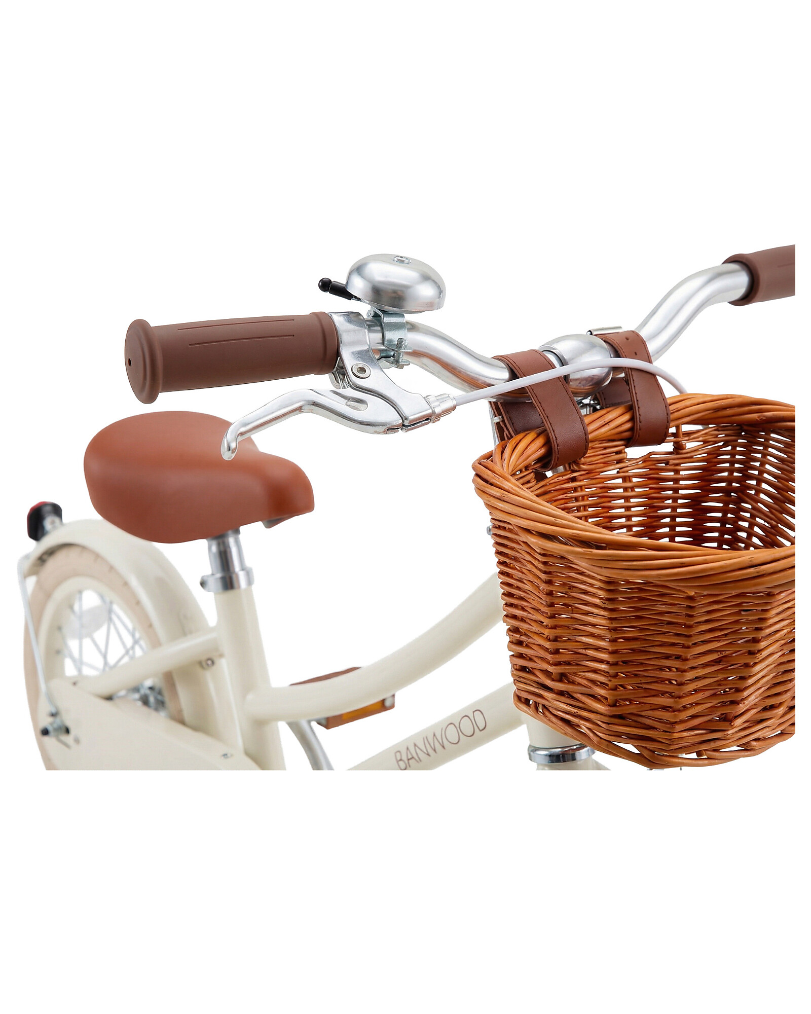 Il design si distingue per i dettagli Banwood: sellino e manopole in similpelle marrone, pneumatici color crema, pedali vintage e un elegante cestino anteriore in vimini removibile.