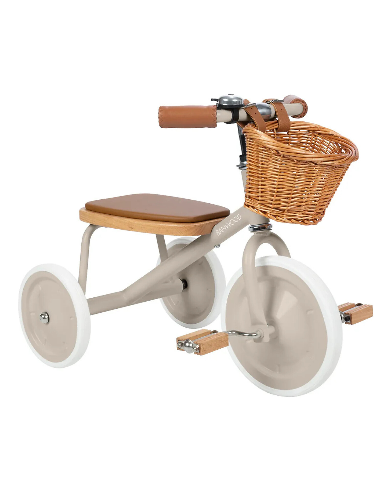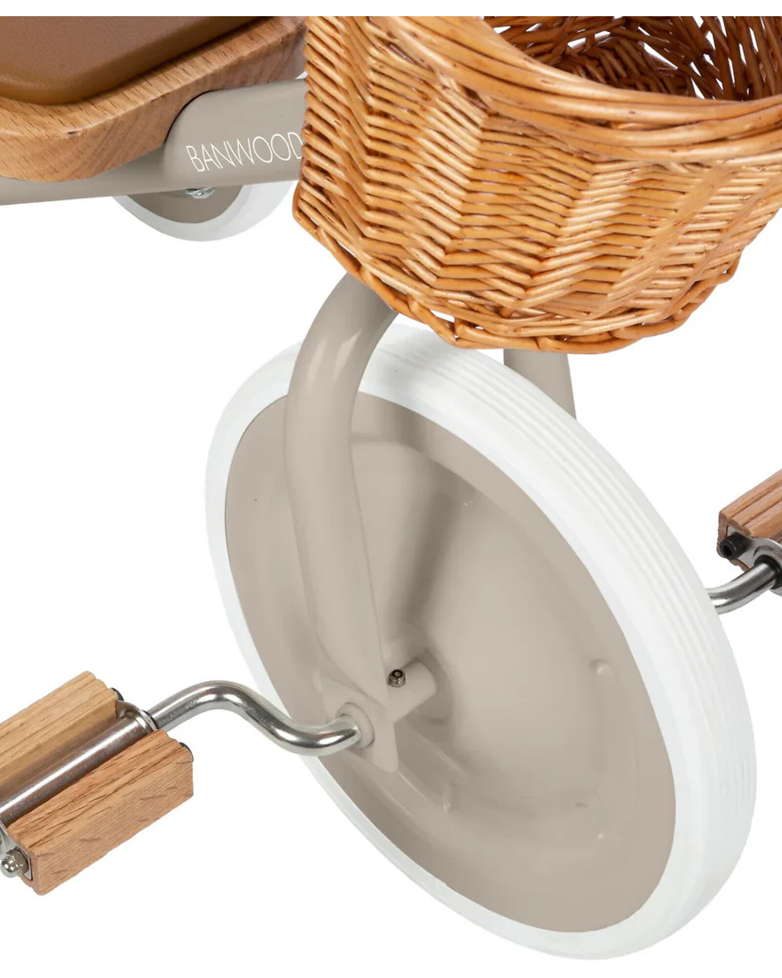 Triciclo Legno ed Ecopelle con Cestino - Beige - Dai 3 anni