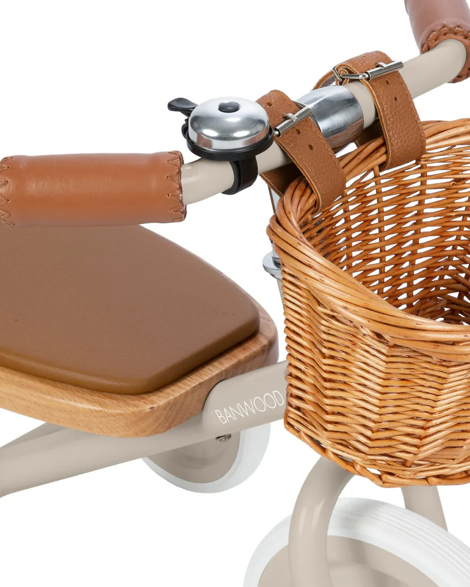 Bellissimo, funzionale e sicuro, il Triciclo Legno ed Ecopelle del marchio Banwood ti farà innamorare con il suo meraviglioso design scandinavo ispirato alle biciclette adulti in stile vintage.