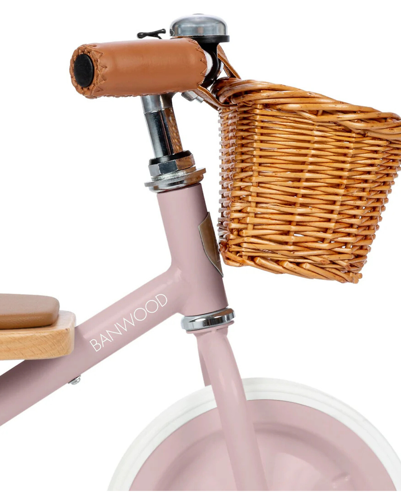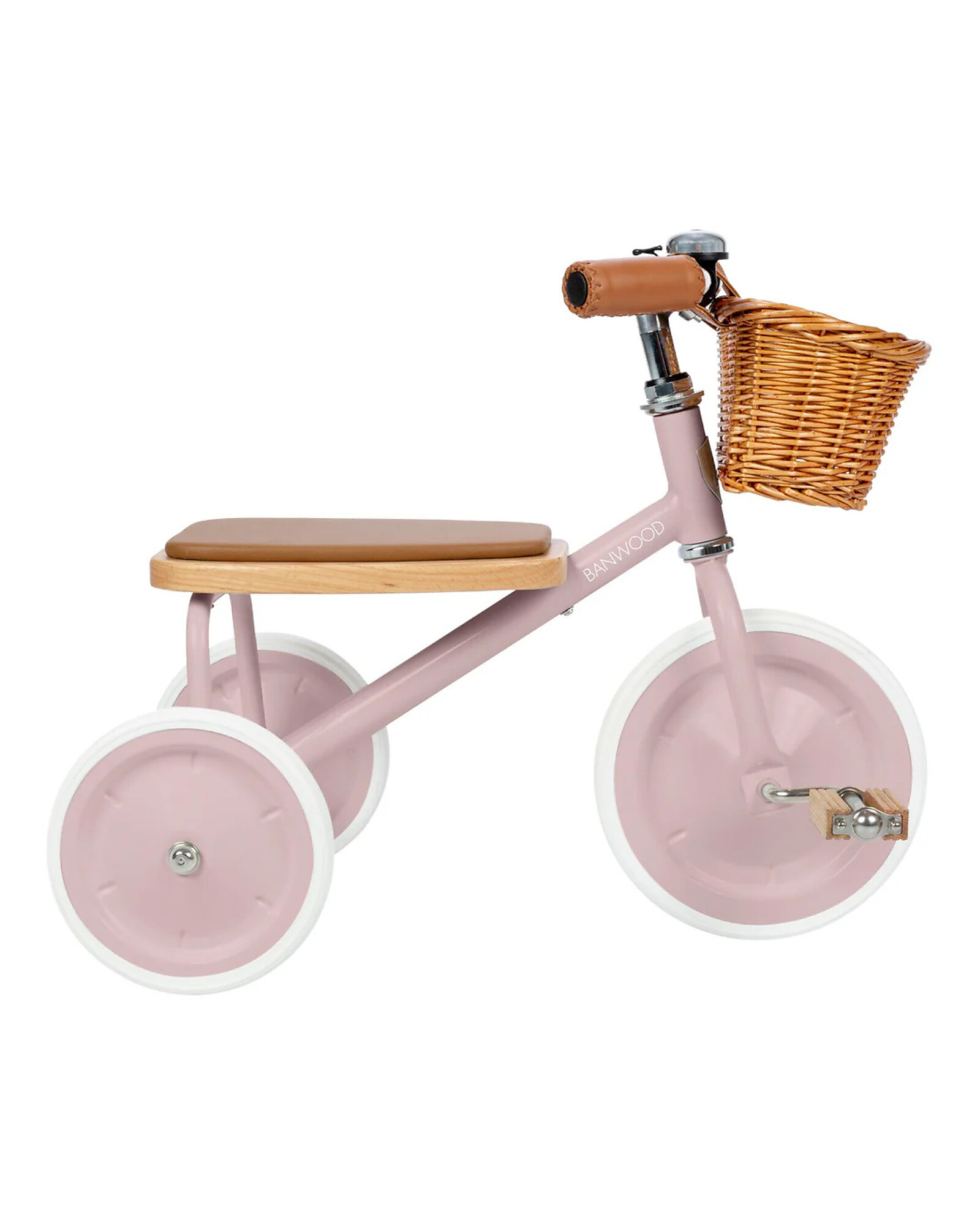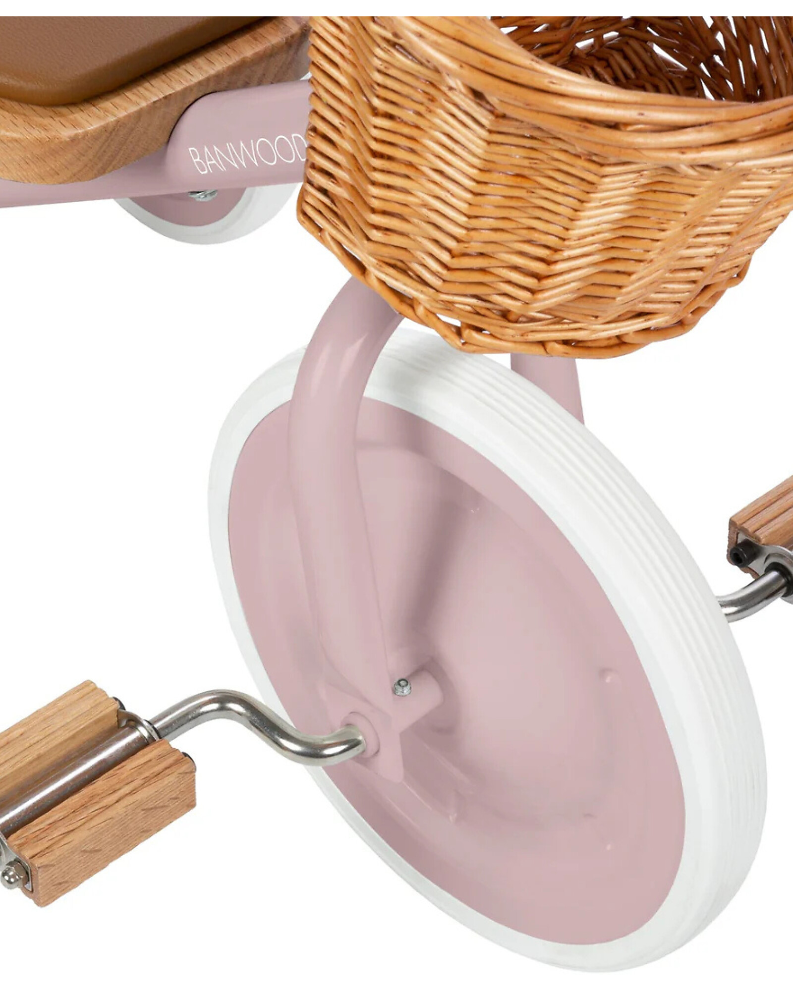 Triciclo Legno ed Ecopelle con Cestino - Rosa Antico - Dai 3 anni