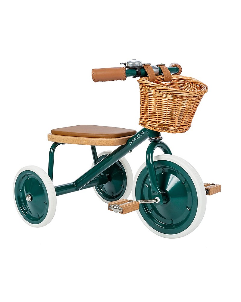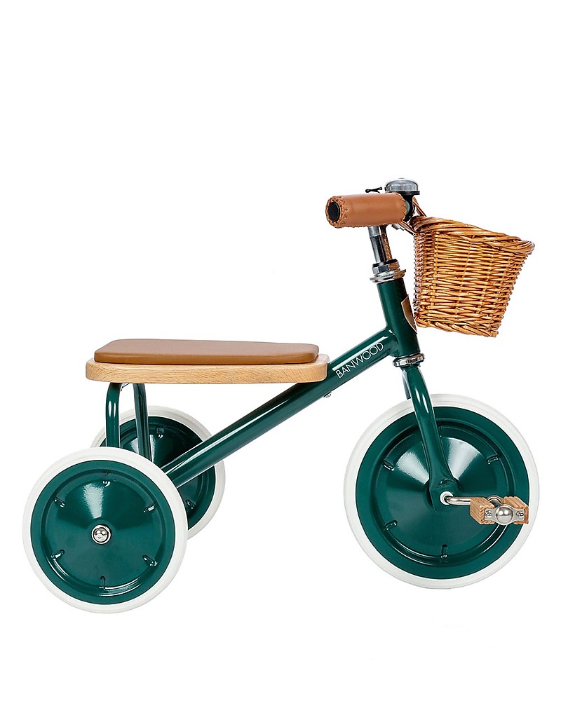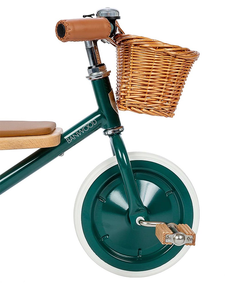 Triciclo Legno ed Ecopelle con Cestino - Verde - Dai 3 anni
