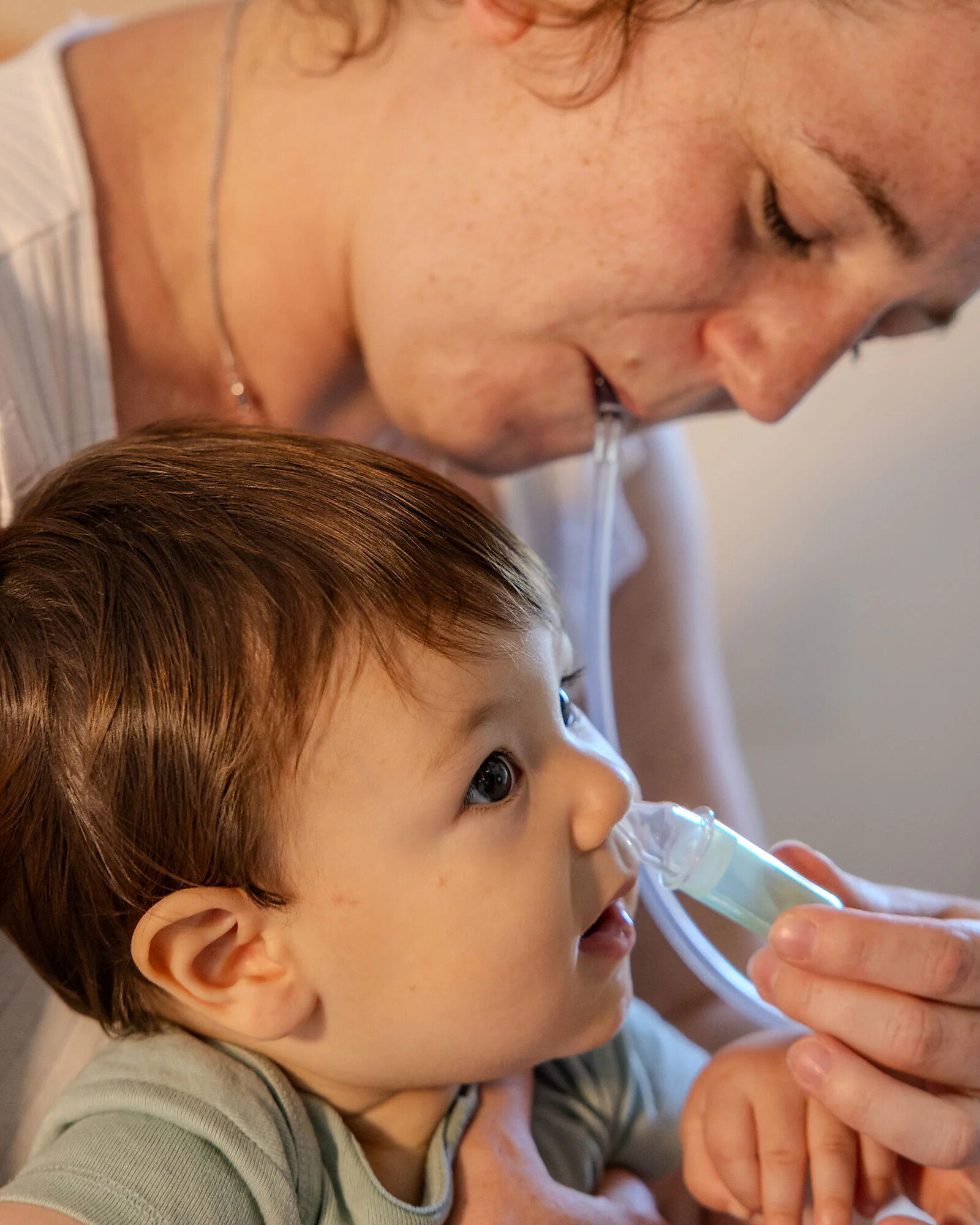 - Punta in silicone morbido: delicata sulle narici sensibili del bambino