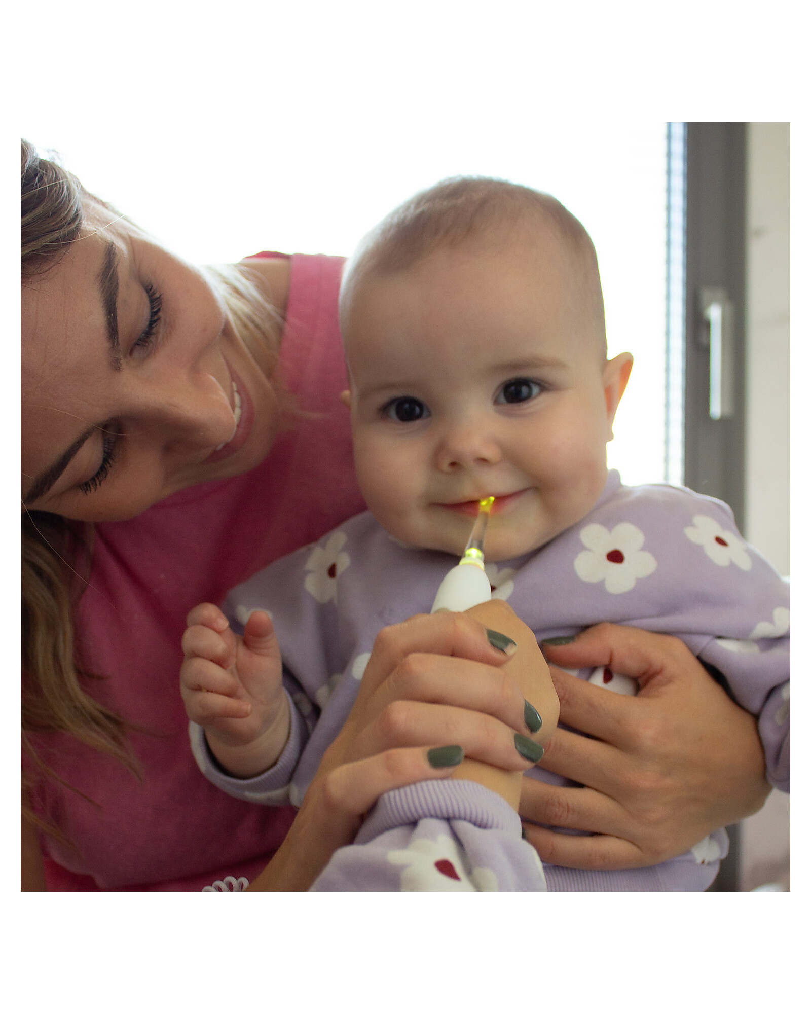 Lo spazzolino elettrico ricaricabile BBluv è pensato per accompagnare i più piccoli fin dai primi mesi, grazie a testine intercambiabili adatte a diverse fasce d’età (vendute separatamente). Il manico antiscivolo in silicone alimentare garantisce una presa sicura e confortevole, mentre la luce LED integrata aiuta a vedere meglio all’interno della bocca del bambino. È leggero, maneggevole e facile da usare, anche per i genitori. Questo spazzolino è una scelta affidabile, sicura e durevole per l’igiene orale quotidiana. Ideale per un approccio moderno e tranquillo alla cura dei denti fin dalla tenera età.