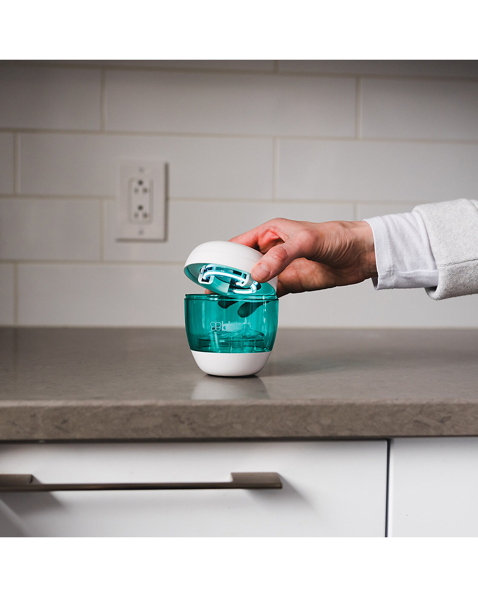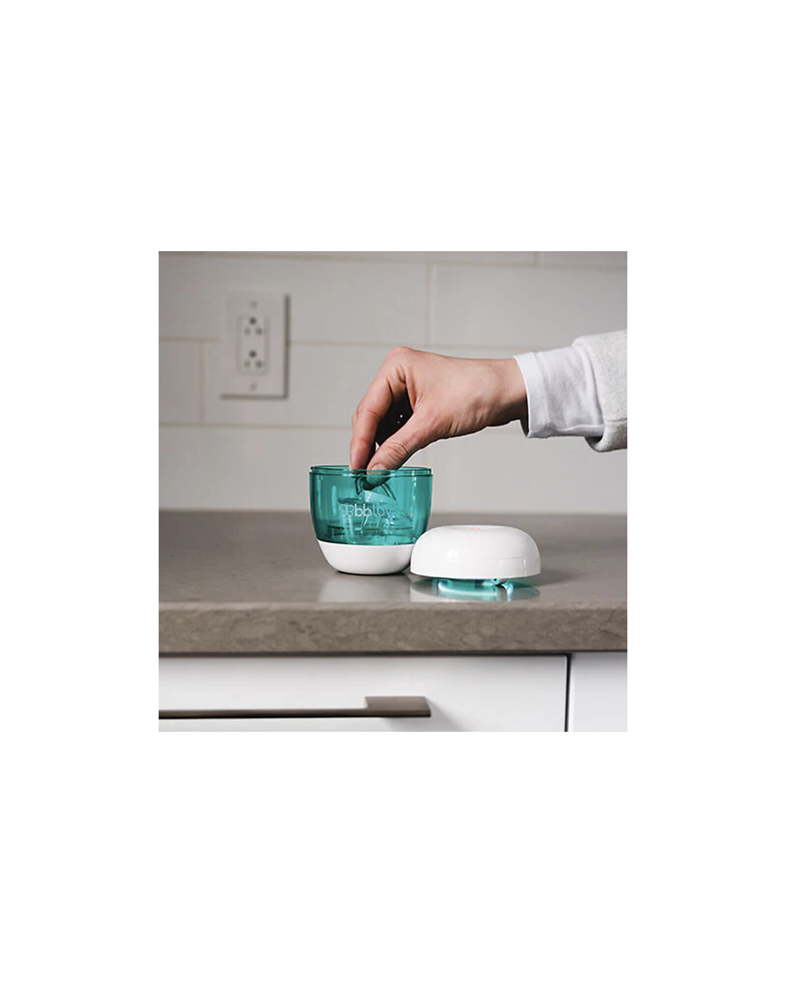 Üvi sterilizza in modo sicuro ed efficace ciucci, tettarelle dei biberon, beccucci di tazze antigoccia, testine degli spazzolini da denti e altri piccoli accessori per bambini, sfruttando la tecnologia a raggi ultravioletti, senza bisogno di utilizzare sostanze chimiche aggressive. Clinicamente testato, sfrutta la stessa tecnologia professionale adottata negli studi dentistici, garantendo massima igiene e sicurezza. Compatto, leggero e pratico da portare ovunque, è ideale sia in casa che in viaggio!