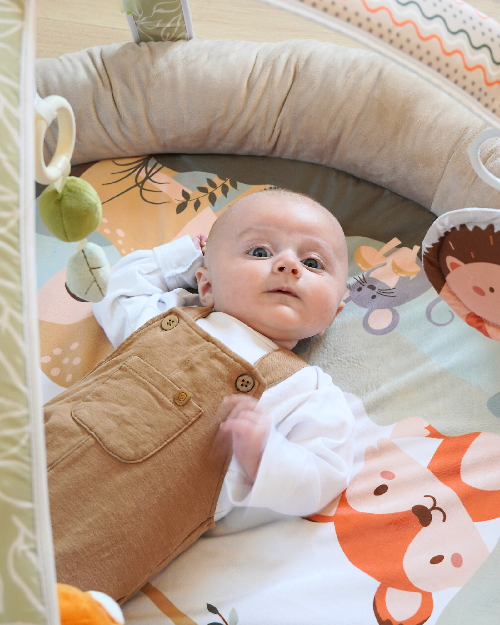 La Palestrina Musicale e Luminosa di BoJungle è progettata per stimolare i sensi del tuo bambino fin dai primi mesi. Dotato di un arco luminoso, emette luci e melodie che catturano l'attenzione del piccolo, favorendo lo sviluppo uditivo e visivo. Include vari elementi che offrono molteplici stimoli tattili e visivi. Il volume delle melodie è regolabile, permettendo di adattarlo alle preferenze del genitore. Realizzato con materiali morbidi e sicuri, offre comfort durante il gioco. Le dimensioni compatte e il design leggero lo rendono facile da riporre e trasportare. Ideale per l'uso a casa o in viaggio, questo tappetino da gioco è perfetto per accompagnare il tuo bambino nelle sue prime scoperte sensoriali.