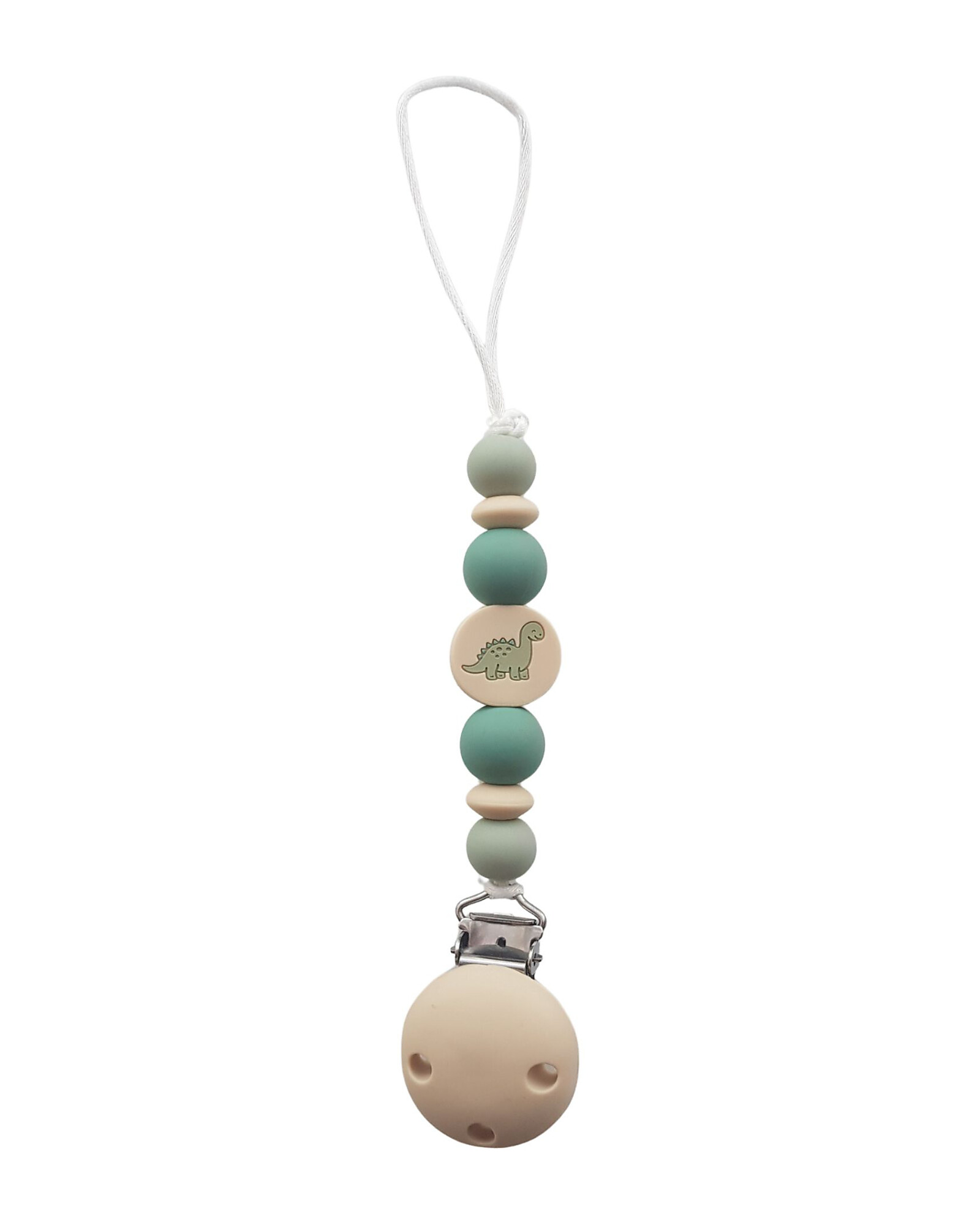 Clip Portaciuccio New Born in Silicone - Massaggiagengive - Verde Acqua - Collezione Dino
