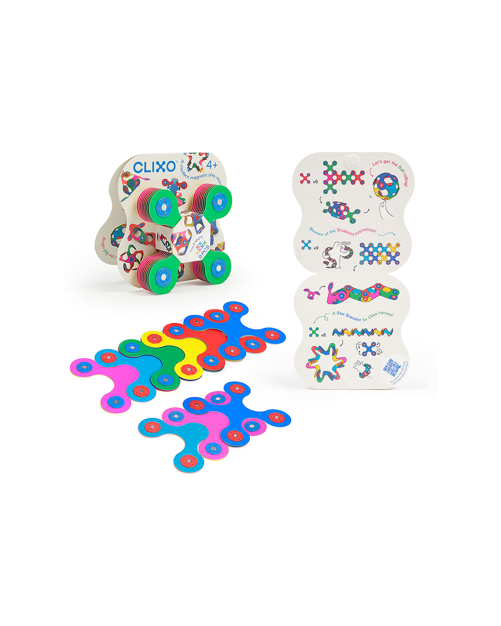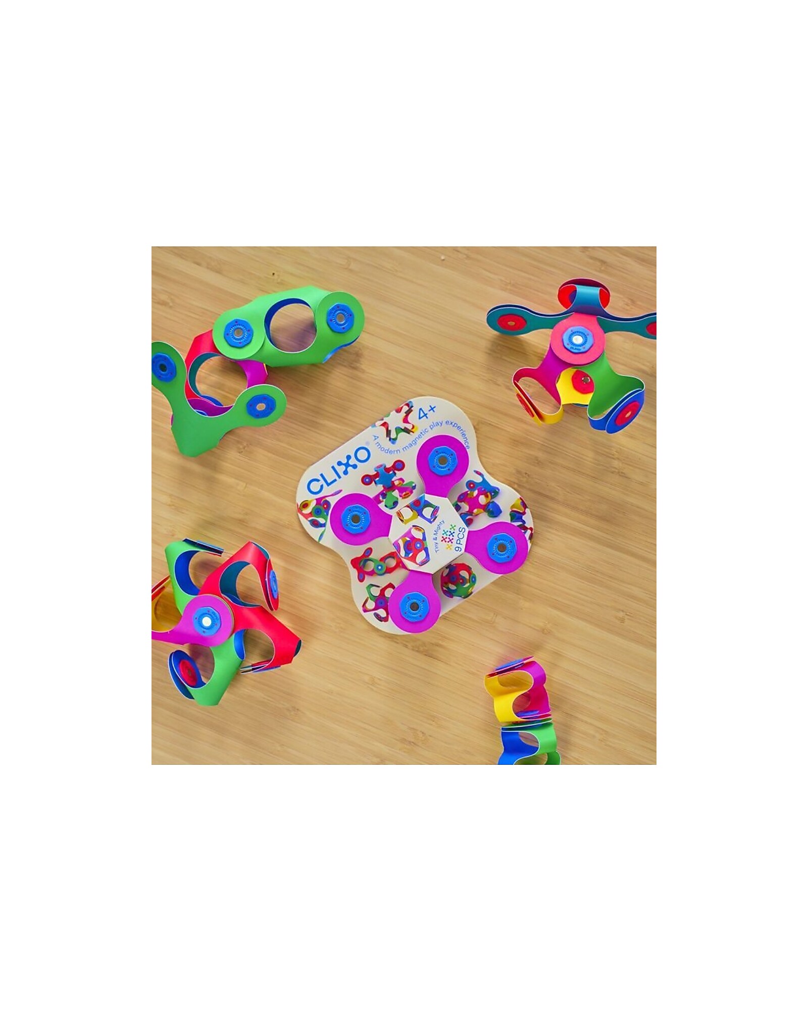 Infinite possibilità di rendere reale la tua immaginazione, con Clixo! Il set Tiny&Mighty è costituito da nove pezzi nella caratteristica forma Quad, dalle quali potrai creare innumerevoli forme 3D coloratissime, basterà un semplice click e i potenti magneti faranno il resto. Realizzato in carta sintetica riciclabile, ha infatti ai suoi estremi dei magneti che ti permetteranno di realizzare forme su forme! E’inoltre lavabile in lavastoviglie! Un giocattolo versatile e coloratissimo che incoraggia l’apprendimento STEAM, l’avvicinarsi alle discipline scientifiche, artistiche e matematiche attraverso il gioco. Lo potrai portare sempre con te, perché Clixo è un giocattolo compatto, leggero che si adatta alla tua mano!