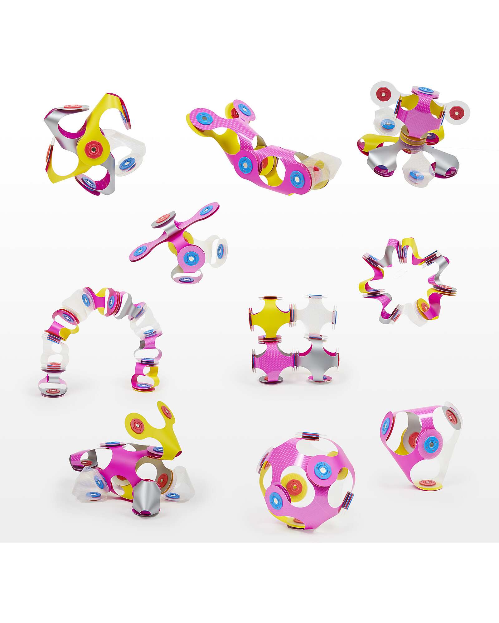 Infinite possibilità di rendere reale la tua immaginazione, con Clixo! Il set Tiny&Mighty è costituito da nove pezzi nella caratteristica forma Quad, dalle quali potrai creare innumerevoli forme 3D coloratissime, basterà un semplice click e i potenti magneti faranno il resto. Realizzato in carta sintetica riciclabile, ha infatti ai suoi estremi dei magneti che ti permetteranno di realizzare forme su forme! E’inoltre lavabile in lavastoviglie! Un giocattolo versatile e coloratissimo che incoraggia l’apprendimento STEAM, l’avvicinarsi alle discipline scientifiche, artistiche e matematiche attraverso il gioco. Lo potrai portare sempre con te, perché Clixo è un giocattolo compatto, leggero che si adatta alla tua mano!
