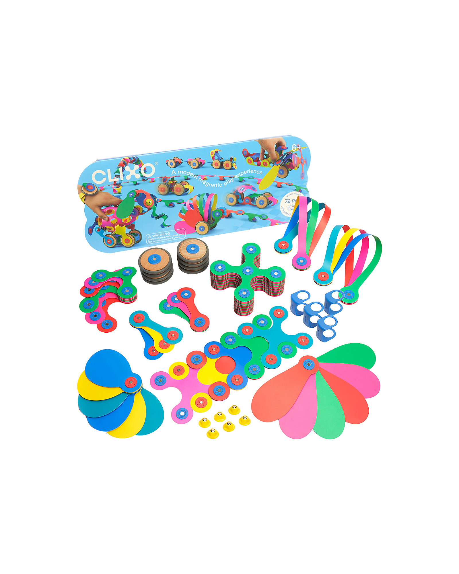 - Clixo è un gioco di costruzione classico riproposto in chiave moderna, dove i protagonisti principali sono tessere magnetiche da costruzioni versatili, leggere, colorate e flessibili che offrono infinite possibilità di rendere reali le tue idee, attraverso potenti magneti!