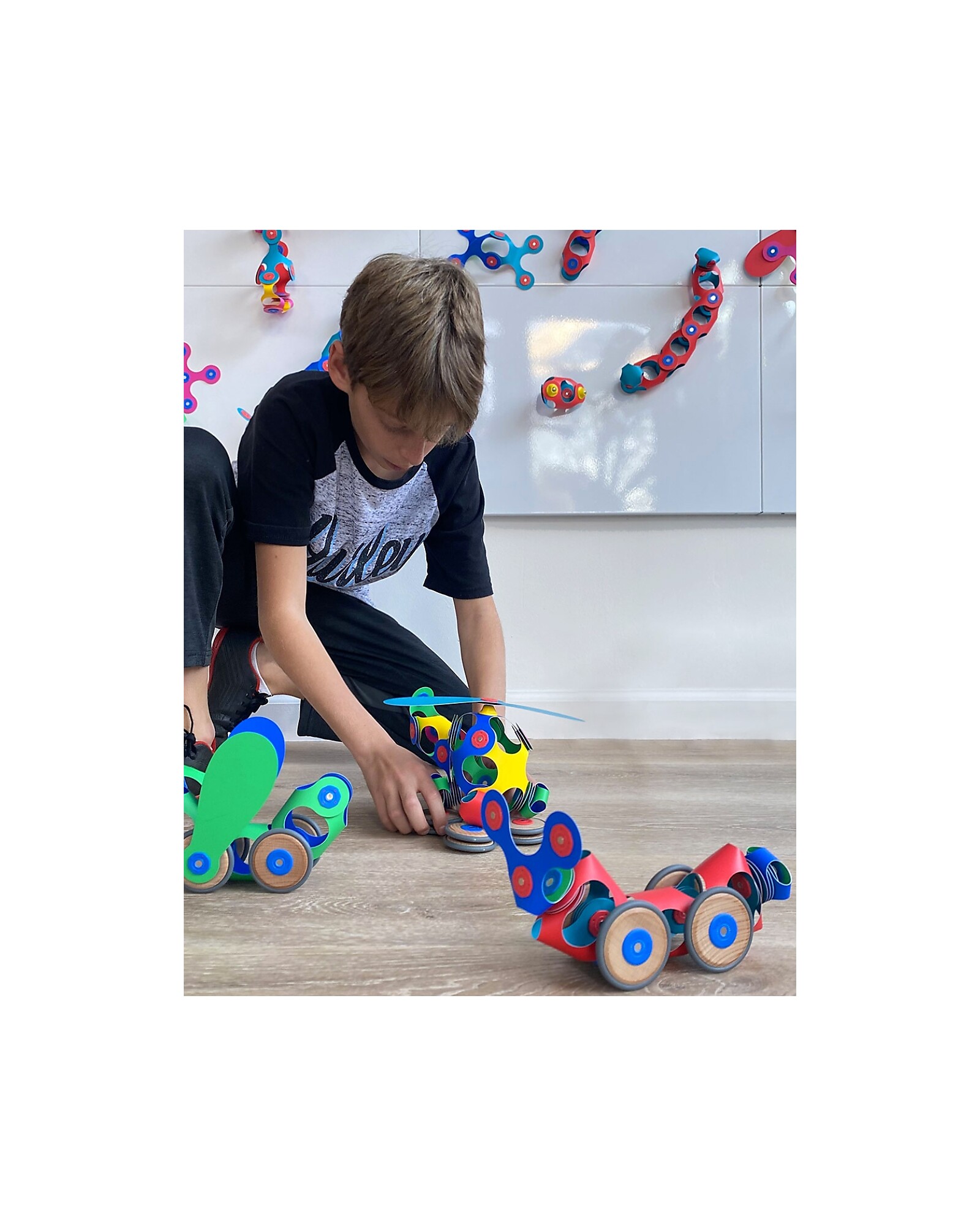 Trasforma in realtà tutto ciò che la tua mente vuole rendere tale, Clixo e il Wheel creator Pack faranno il resto! Questo set da 72 pezzi coloratissimi e flessibili accenderanno sempre più nuove idee, pronto per creare insieme a te tutte le tue idee a quattro ruote. Realizzato in carta sintetica riciclabile, ha ai suoi estremi dei magneti che ti permetteranno di realizzare forme su forme. Basterà un semplice click e i potenti magneti faranno il resto. E’inoltre lavabile in lavastoviglie! Un giocattolo versatile e coloratissimo, che incoraggia l’apprendimento STEAM, l’avvicinarsi alle discipline scientifiche, artistiche e matematiche attraverso il gioco. Lo potrai portare sempre con te, perché Clixo è un giocattolo compatto, leggero che si adatta alla tua mano!