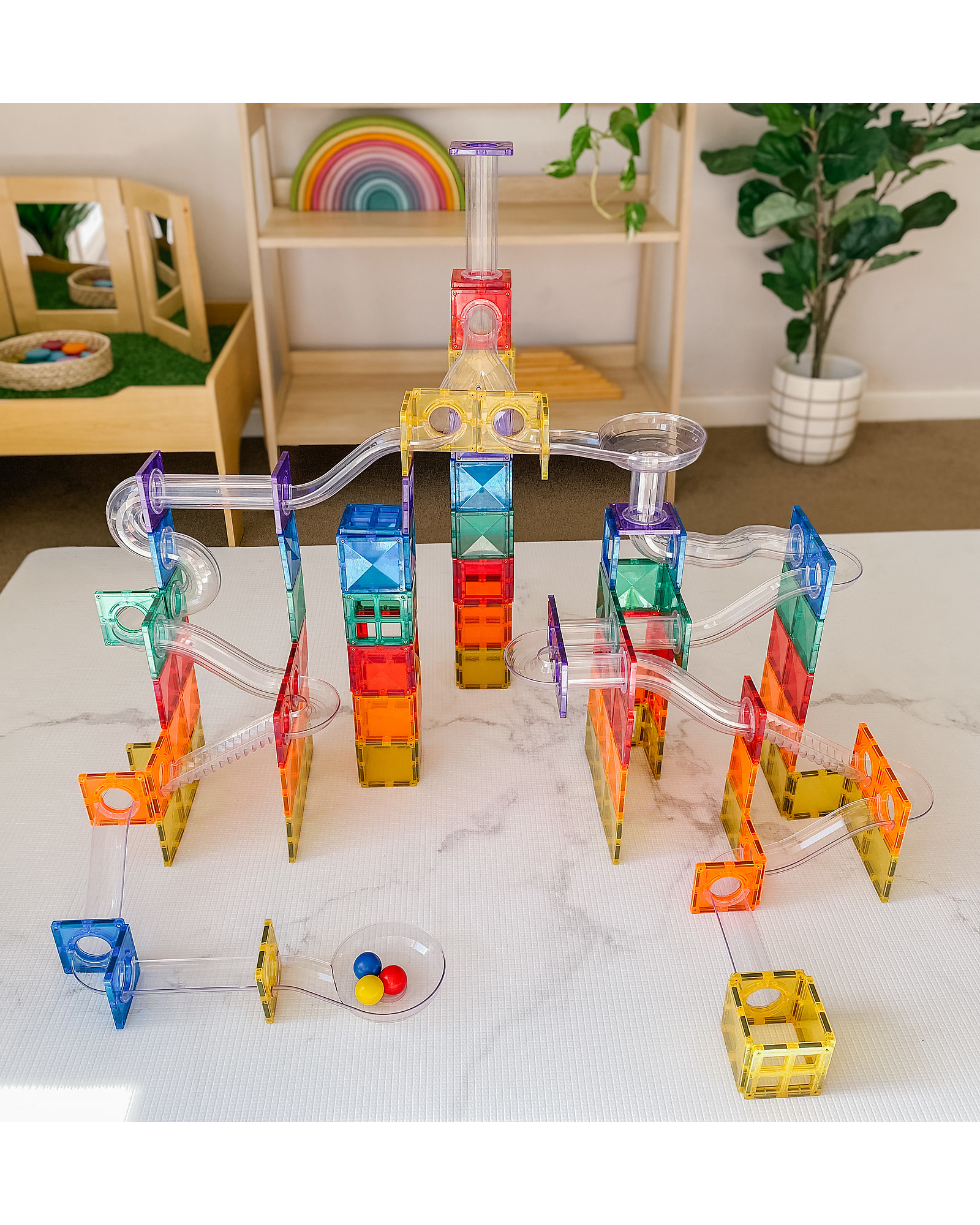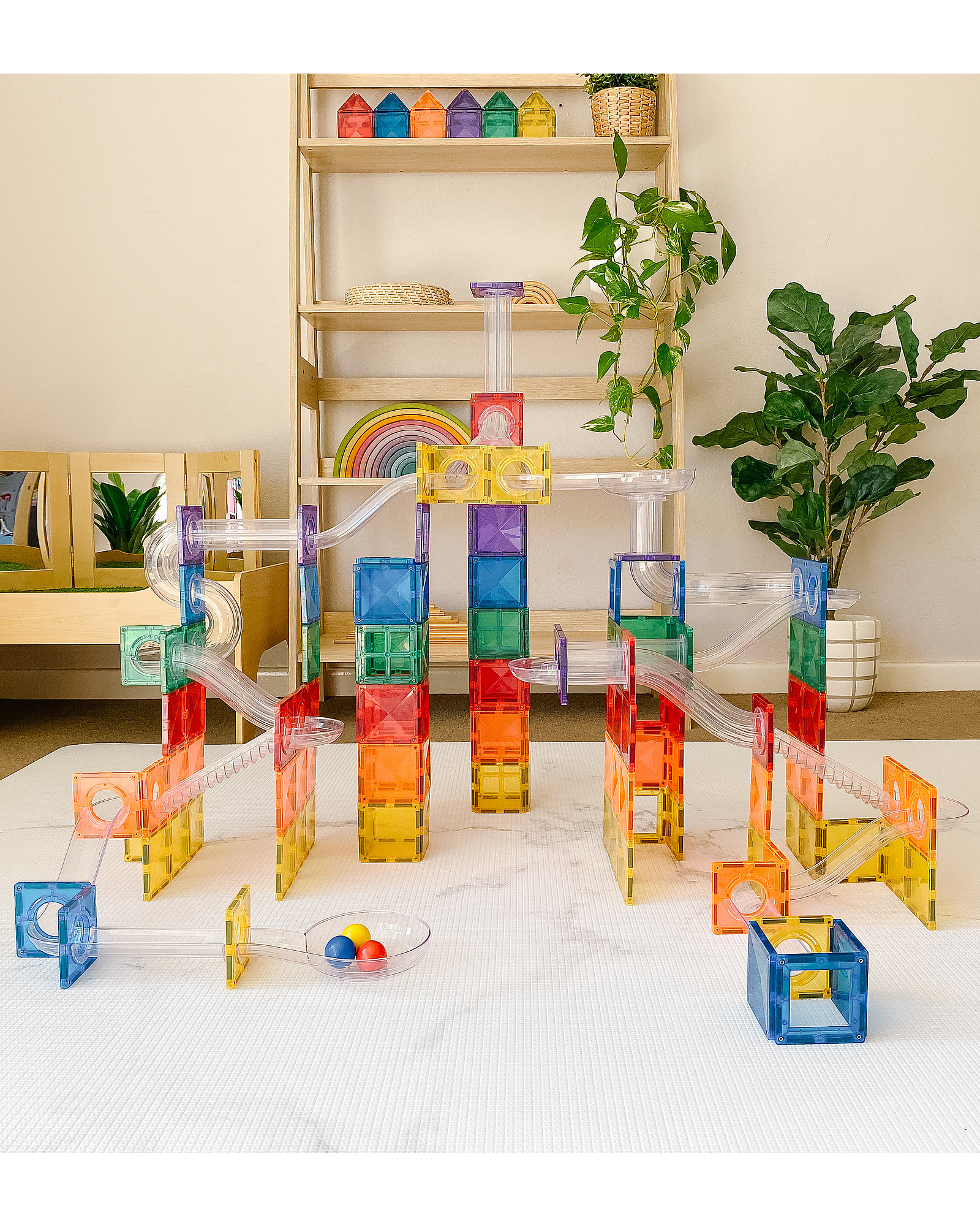 92 Pezzi - Pista Palline Espansione per Tessere Magnetiche - Arcobaleno - Apprendimento STEM!