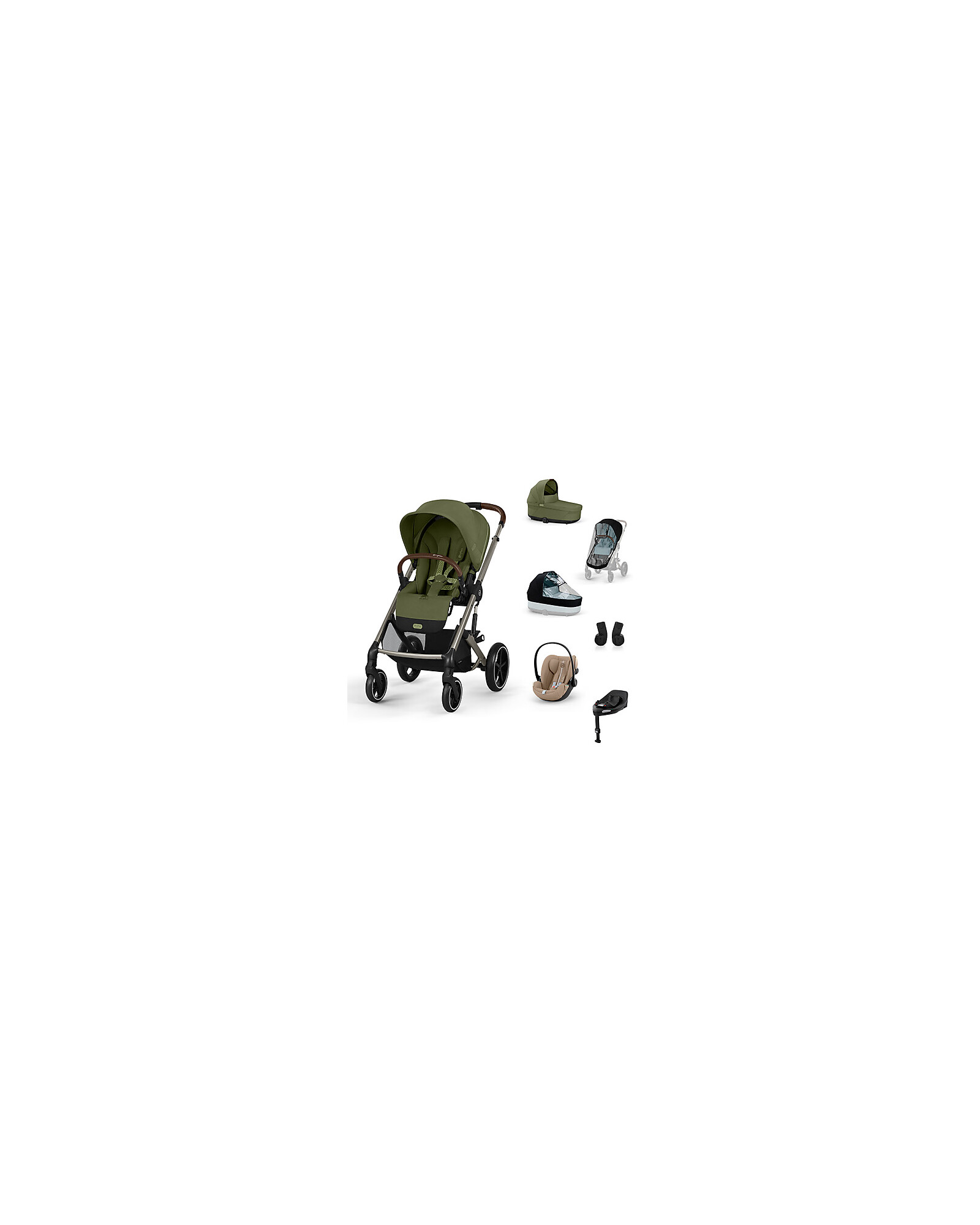 Passeggino Balios S Lux Trio Completo XL - Moss Green - Passeggino + Navicella + 2 Parapioggia + Seggiolino Auto Cloud G i-Size Plus Almond Beige + Base e Adattatori