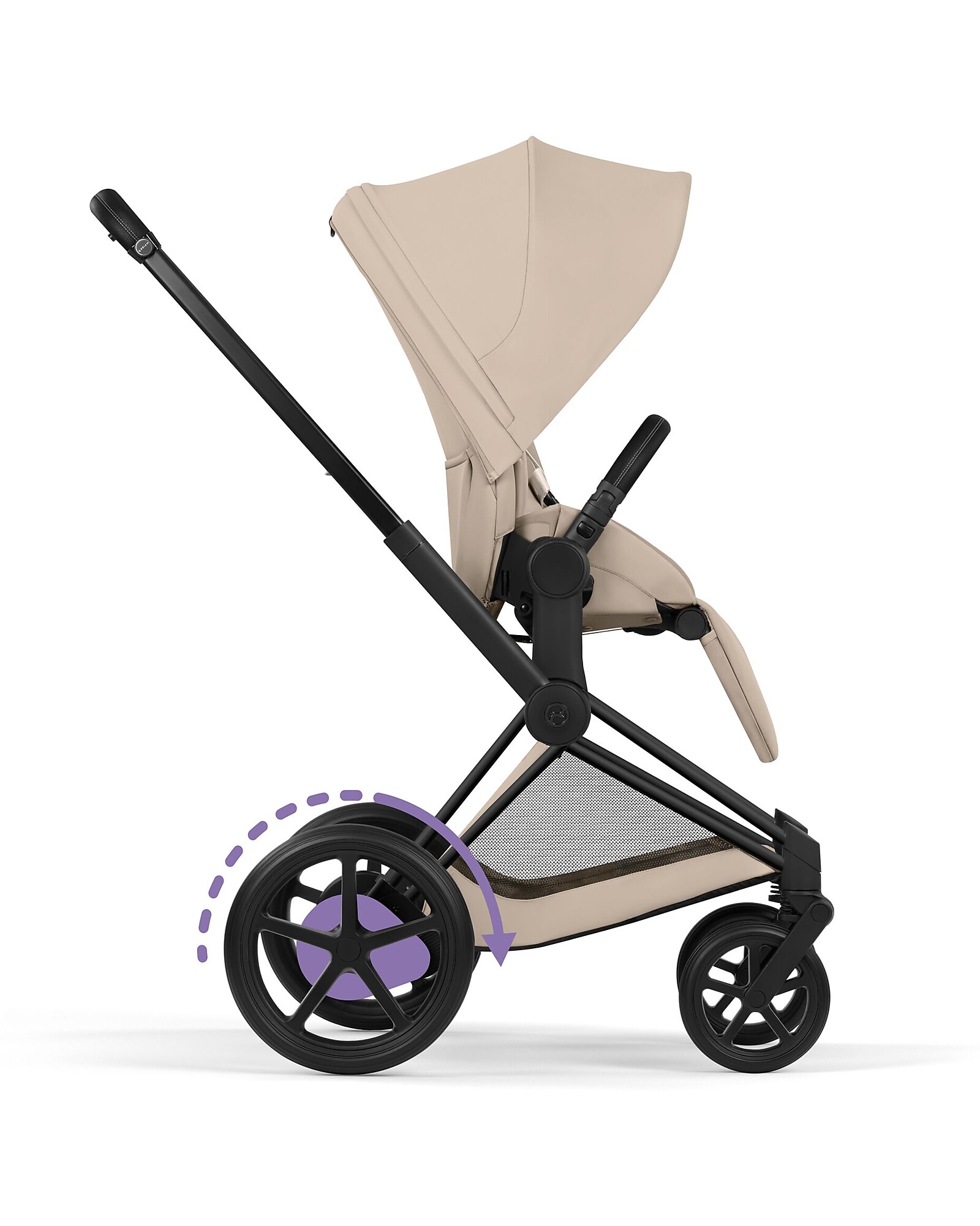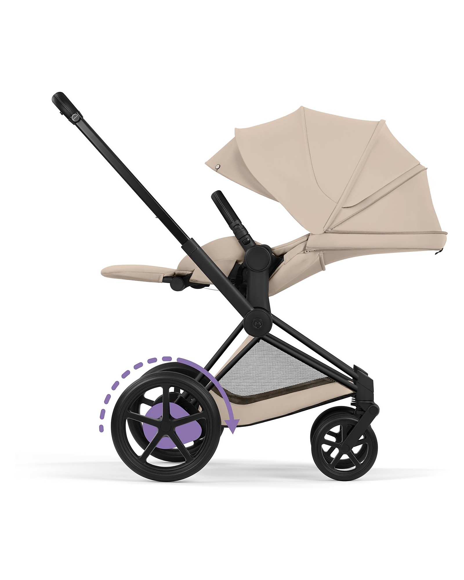 Passeggino e-Priam Duo Comfort - Telaio Matt Black + Seduta e Navicella Richiudibile Cozy Beige
