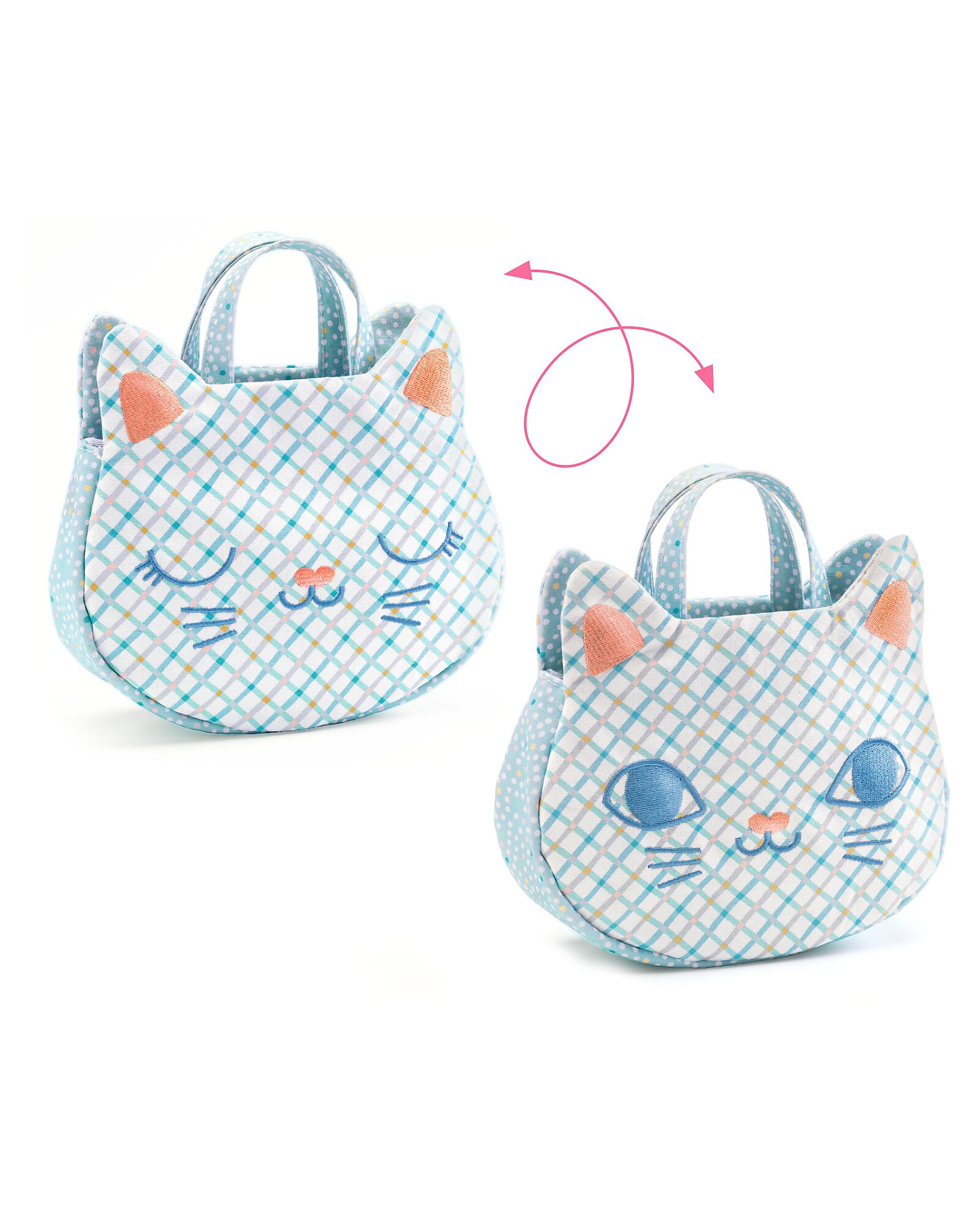 Borsetta a forma di testa di gatto, ricamata con cura e piena di fascino. Al suo interno, tutti gli accessori indispensabili per giocare come i grandi: un orologio con cinturino elastico, un telefono con la sua cover a coniglietto, un mazzo di 3 chiavi e un orologio in legno. E anche con tutti questi oggetti, rimane ancora spazio per il peluche o il portachiavi preferito, rendendo ogni gioco ancora più divertente e speciale!