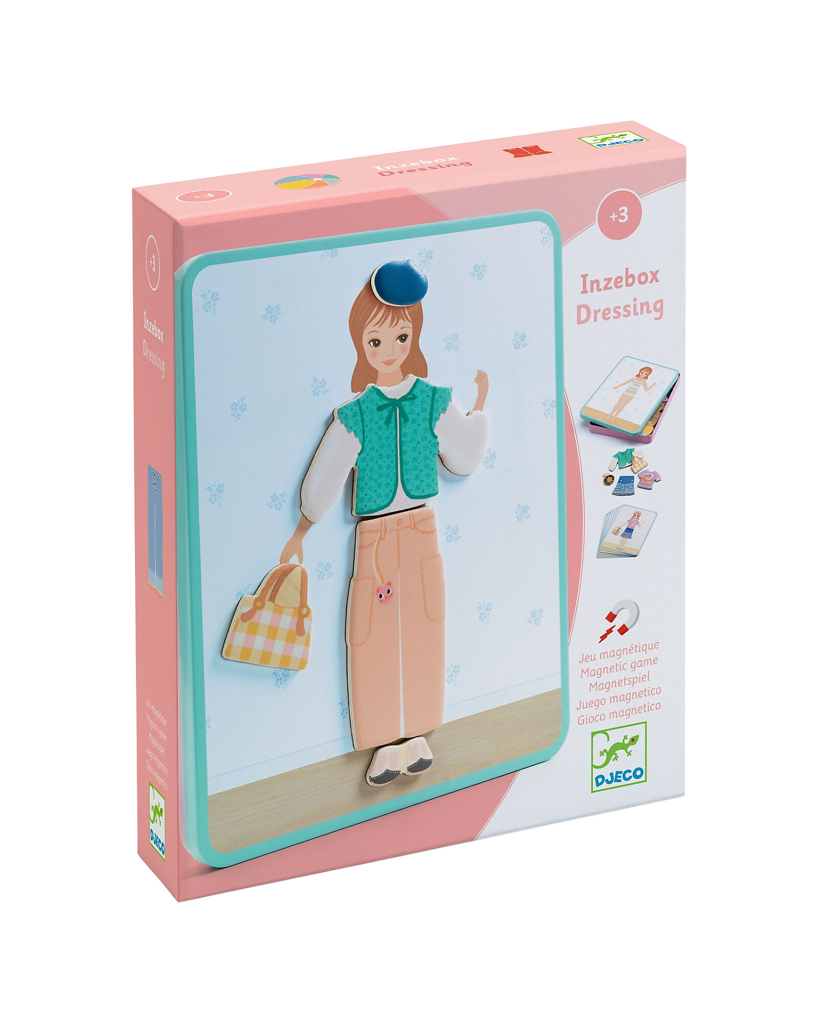 Inzebox Dressing di Djeco è un gioco magnetico creativo che stimola la fantasia e la coordinazione dei bambini, invitandoli a esplorare il mondo della moda. Grazie ai 38 pezzi magnetici in legno di alta qualità, i bambini possono creare outfit originali ricreando i 12 abbinamenti proposti o inventando combinazioni nuove. La scatola metallica illustrata, con due scenari diversi, diventa la base magnetica ideale per il gioco. Facile da riporre e da portare ovunque, è realizzato con legno certificato FSC®. Perfetto per stimolare la creatività e il gioco autonomo!