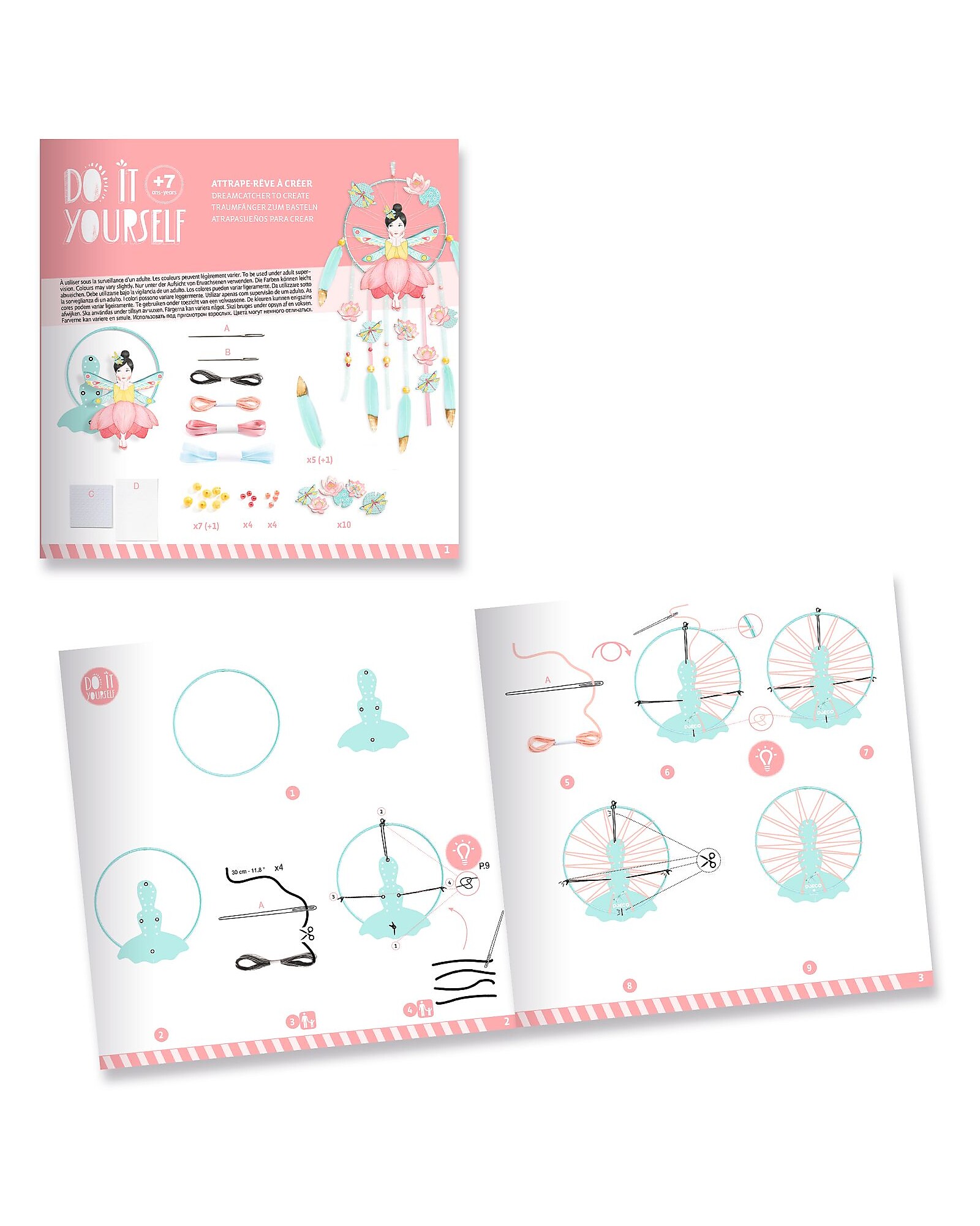 L’acchiappasogni Fata del Loto del marchio Djeco è un kit creativo per realizzare un accessorio decorativo in carta certificata FSC per la cameretta dei più piccoli, o qualunque altra stanza si voglia adornare! Potrai decorare la fata con mille colori, grazie alle perline, i fili, le piume e i nastri inclusi nel set!