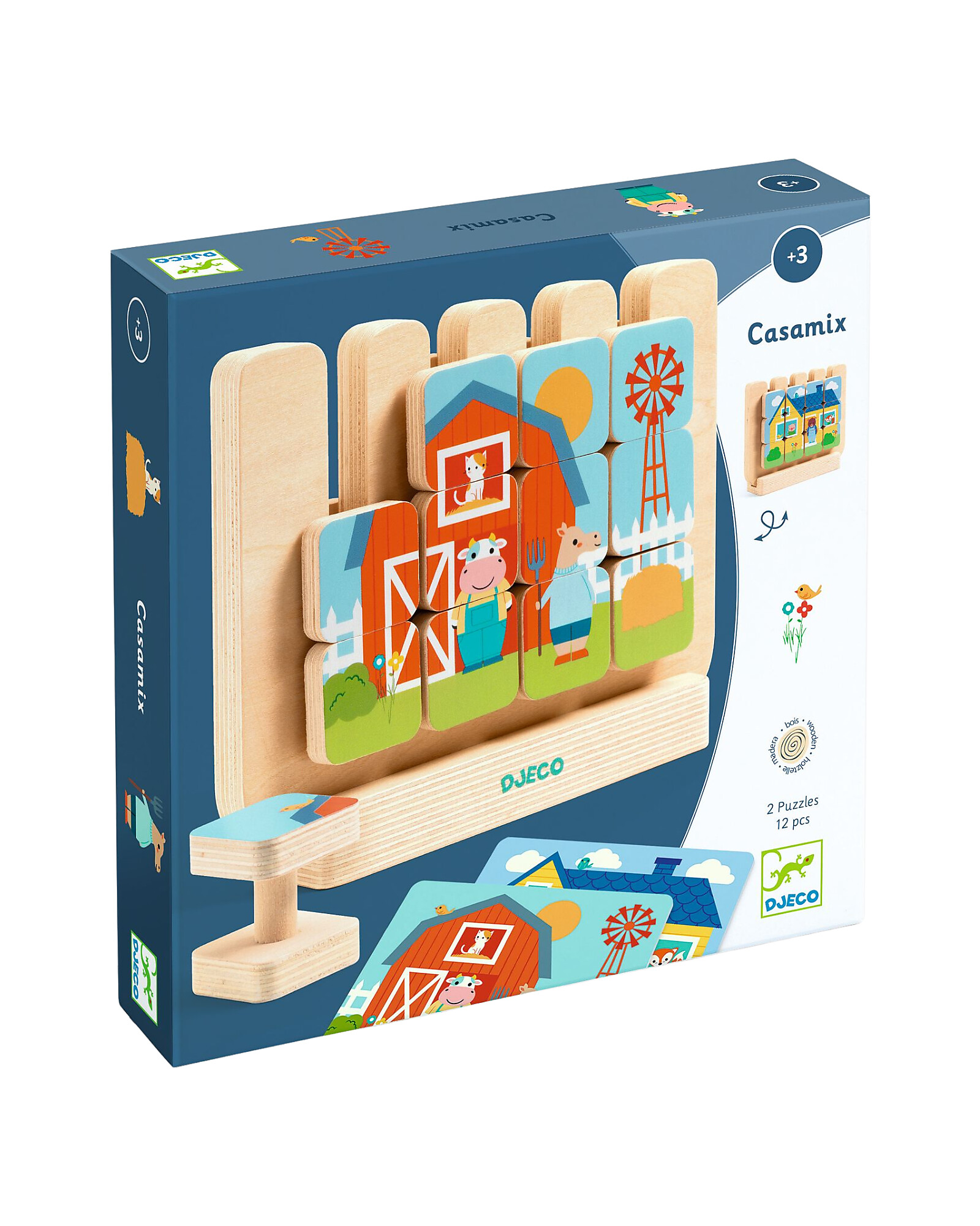 Il Puzzle in legno verticale CASAMIX di Djeco invita i piccoli dai 3 anni a ricreare dolci casette scegliendo e sovrapponendo i grandi pezzi in legno FSC® nel giusto ordine. Con 2 modelli da riprodurre, il bambino allena osservazione, logica e motricità fine mentre costruisce la sua mini-storia. I 12 pezzi illustrati su entrambi i lati sono facili da afferrare e perfetti per le prime attività autonome. Un gioco semplice e rassicurante, pensato per stimolare creatività e concentrazione, trasformando ogni combinazione in una piccola conquista.
