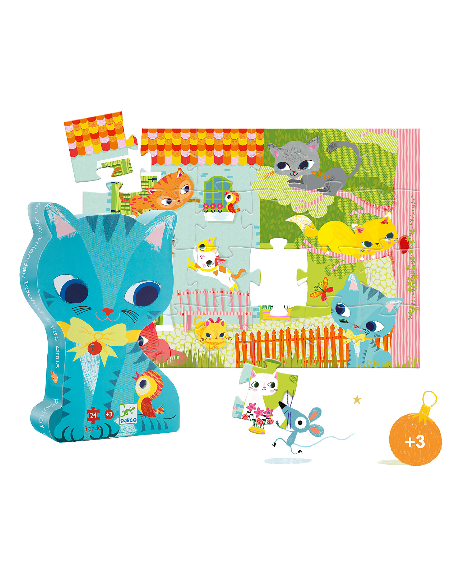 Puzzle di gatti è un incantevole puzzle di 24 tessere che trasporta i bambini nel mondo dolce e colorato di Pachat e dei suoi amici. Perfetto per sviluppare concentrazione, coordinazione mano-occhio e capacità di osservazione, ogni tessera è pensata per stimolare curiosità e creatività. Il puzzle arriva in una elegante scatola a forma di gatto, ideale da regalare o portare ovunque. Un gioco semplice e divertente che incoraggia i più piccoli a ricomporre le immagini, condividere momenti di gioco con la famiglia e scoprire il piacere della prima costruzione.