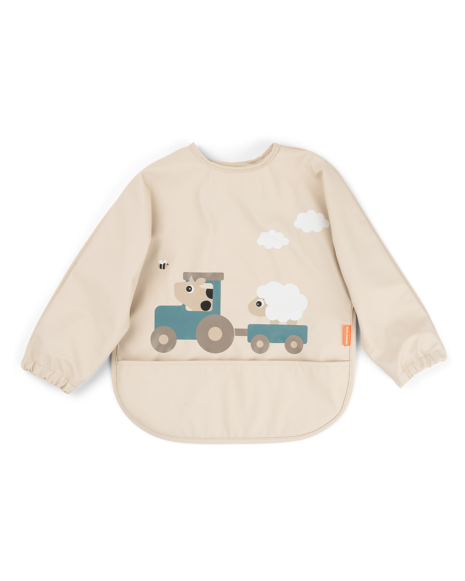 Bavaglio Impermeabile a Maniche Lunghe con Tasca - Tiny Farm - Sabbia - Certificato OEKO-TEX - 6m+