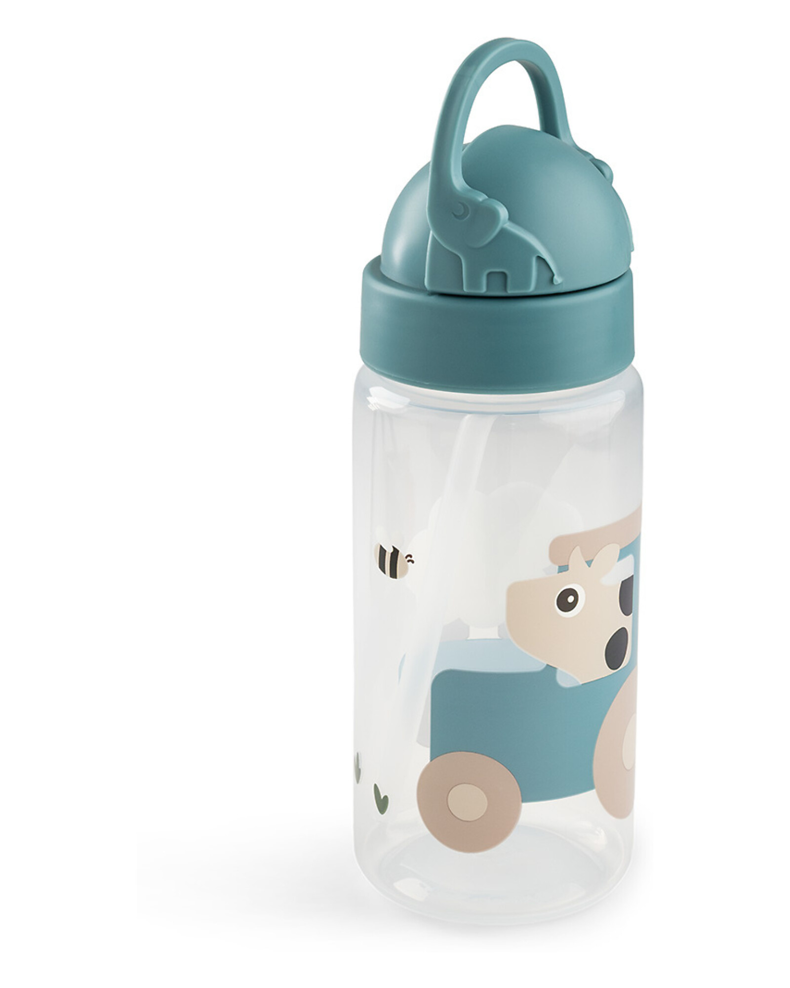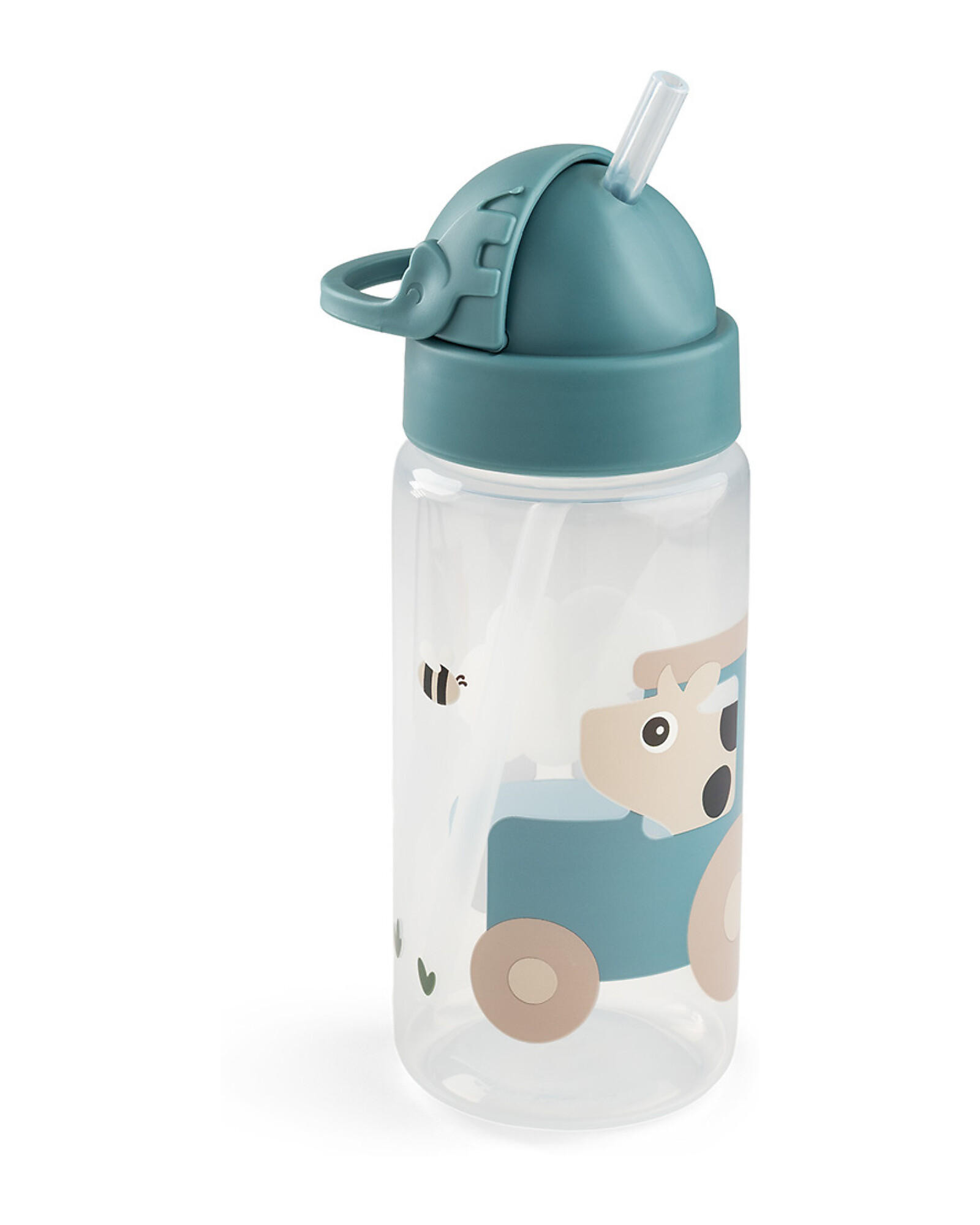 Borraccia 350 ml - Tiny Farm - Blu - con Cannuccia a Scomparsa! - 12m+