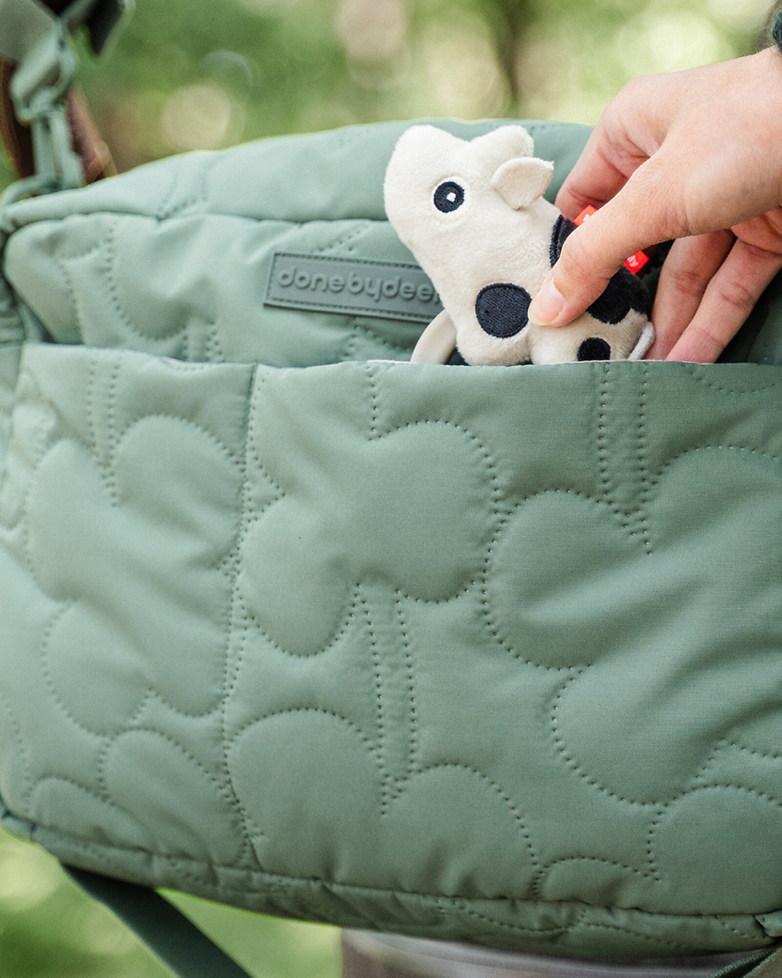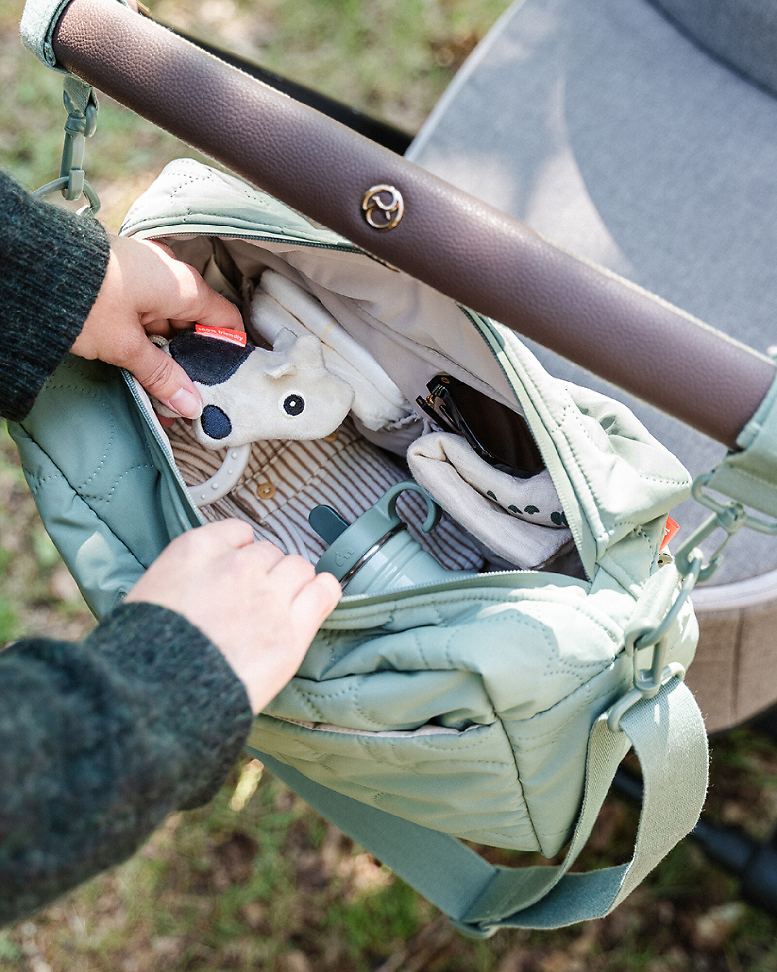 Questa borsa passeggino trapuntata è l'accessorio ideale per i genitori sempre in movimento. Realizzata in tessuto morbido ma resistente e idrorepellente, è perfetta per contenere tutto il necessario per il cambio del bambino. All’esterno dispone di comode tasche per avere tutto a portata di mano. La tracolla regolabile garantisce un trasporto confortevole e i ganci permettono di fissarla facilmente al passeggino. Il design moderno e neutro si adatta a qualsiasi stile.