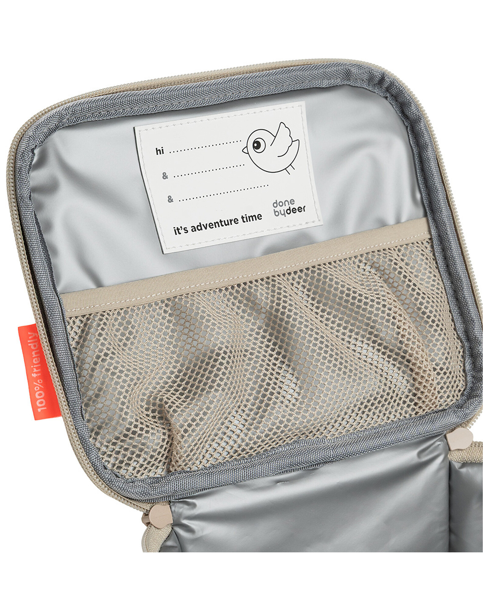 Il grande scomparto principale con tasca in rete è perfetto per inserire ghiaccioli refrigeranti o piccoli snack, mentre le due zip con apertura facilitata garantiscono accesso semplice e veloce. Il dettaglio riflettente sulla maniglia migliora la visibilità e il name tag interno permette di identificarla facilmente.