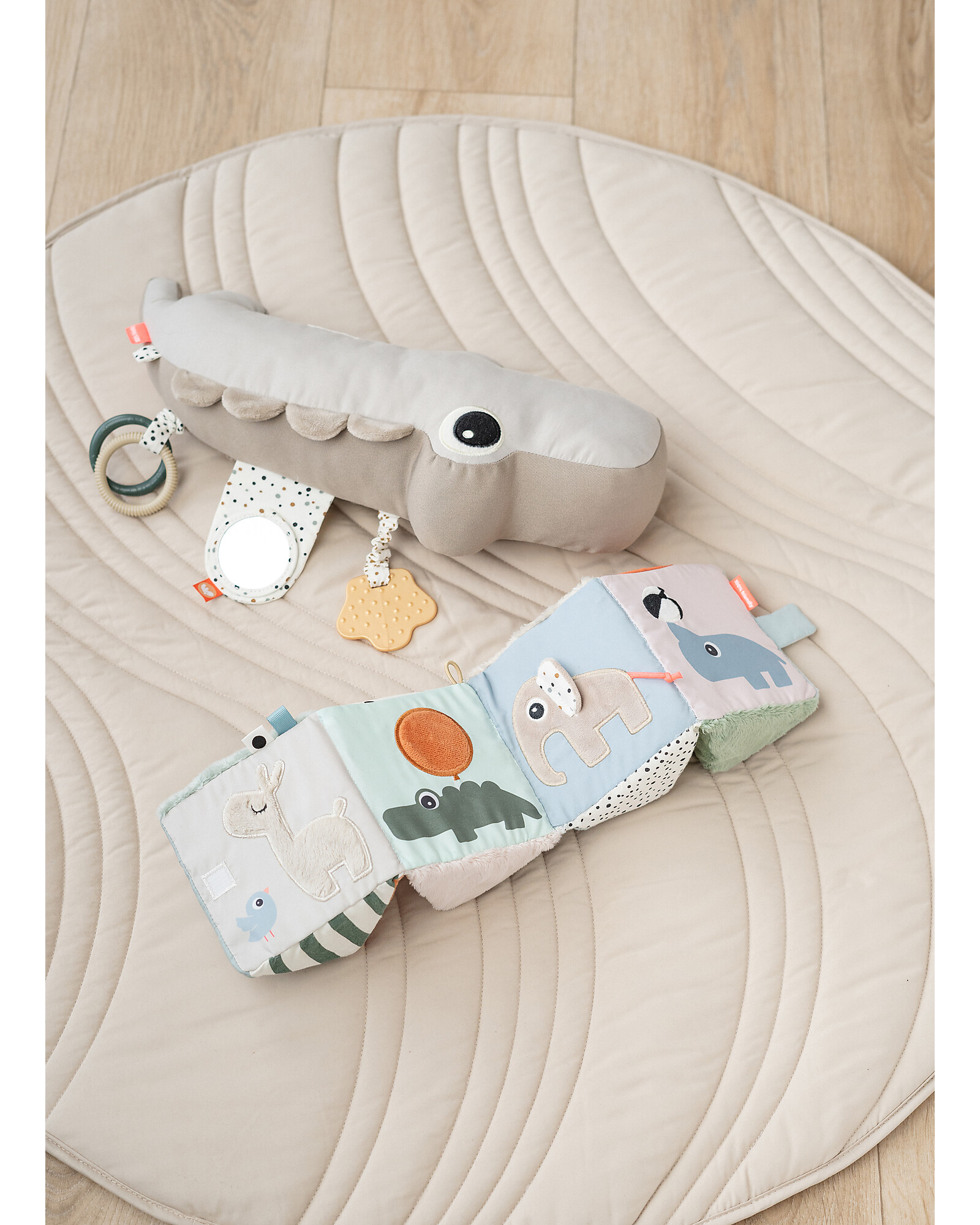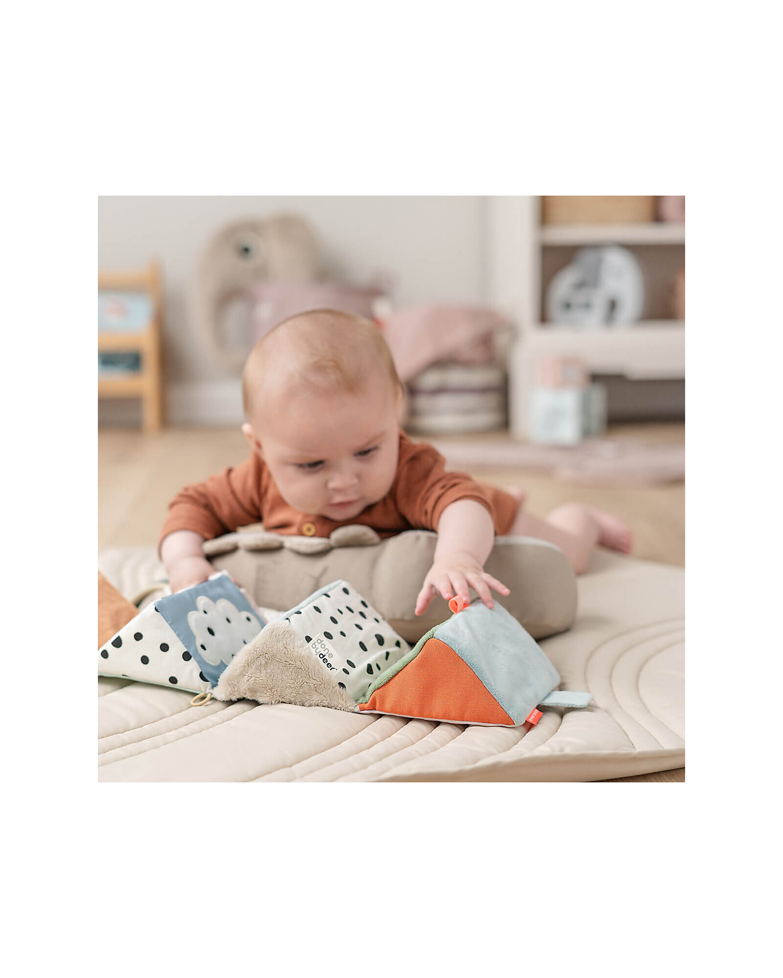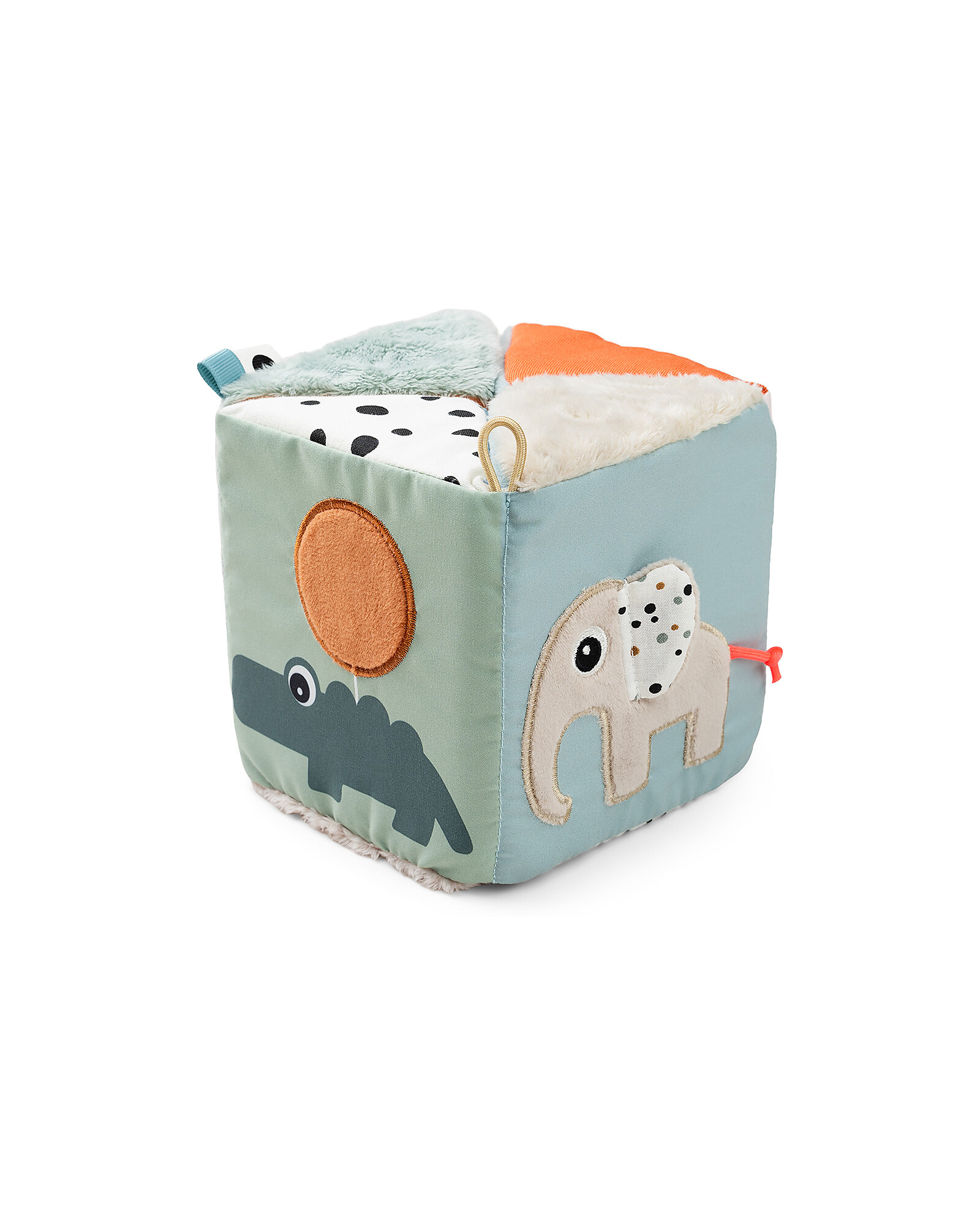 Done by Deer ha creato questo simpatico cubo sensoriale Perfetto per stimolare i sensi dei più piccoli e la loro curiosità è ideale anche per il Tummy Time e il gattonamento. L'elastico permette di portare il gioco ovunque per un divertimento senza fine e senza sosta
