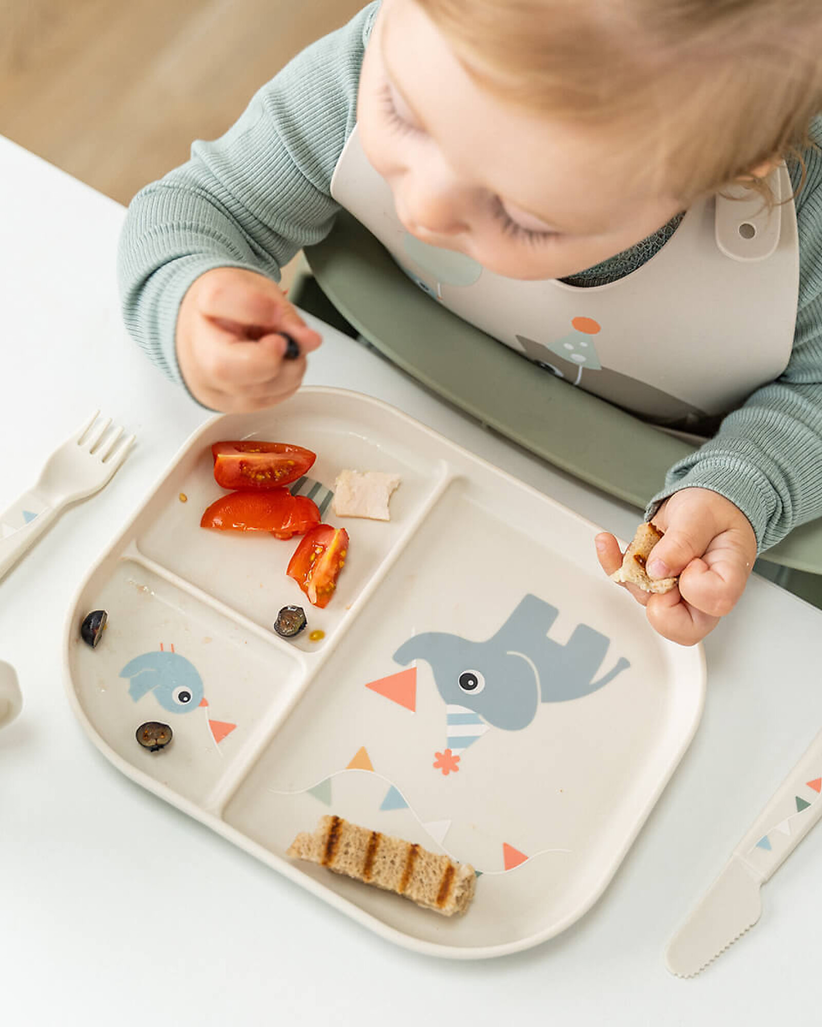 Tutti a tavola con colore e allegria! Il piatto con scomparti di Done by Deer della collezione Foodie, è l’ideale per il tuo bambino che si avvicina alla tavola con curiosità e voglia di autonomia. Dal bordo alto per raccogliere il cibo e una stampa giocosa, ha una pratica base antiscivolo così da rimanere in posizione. La suddivisione del cibo grazie agli scomparti aiuterà il tuo bambino a riflettere su gusti e consistenze diverse. E' realizzato in PP alimentare, una plastica sicura per il piccolo commensale e riciclabile al termine del suo utilizzo per dare vita a nuovi prodotti per l’uso quotidiano!