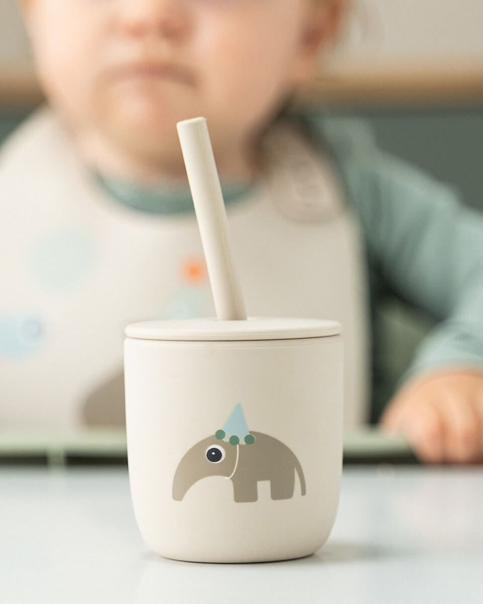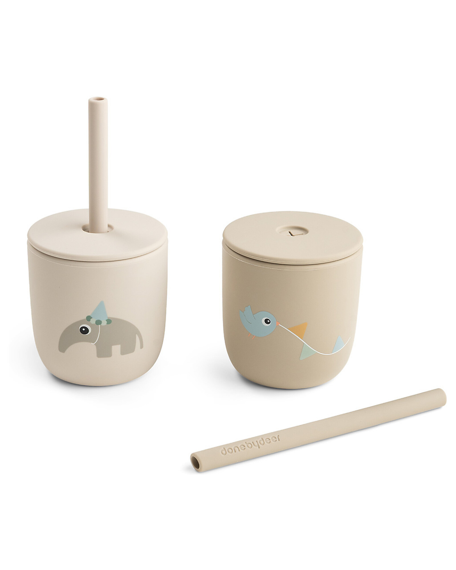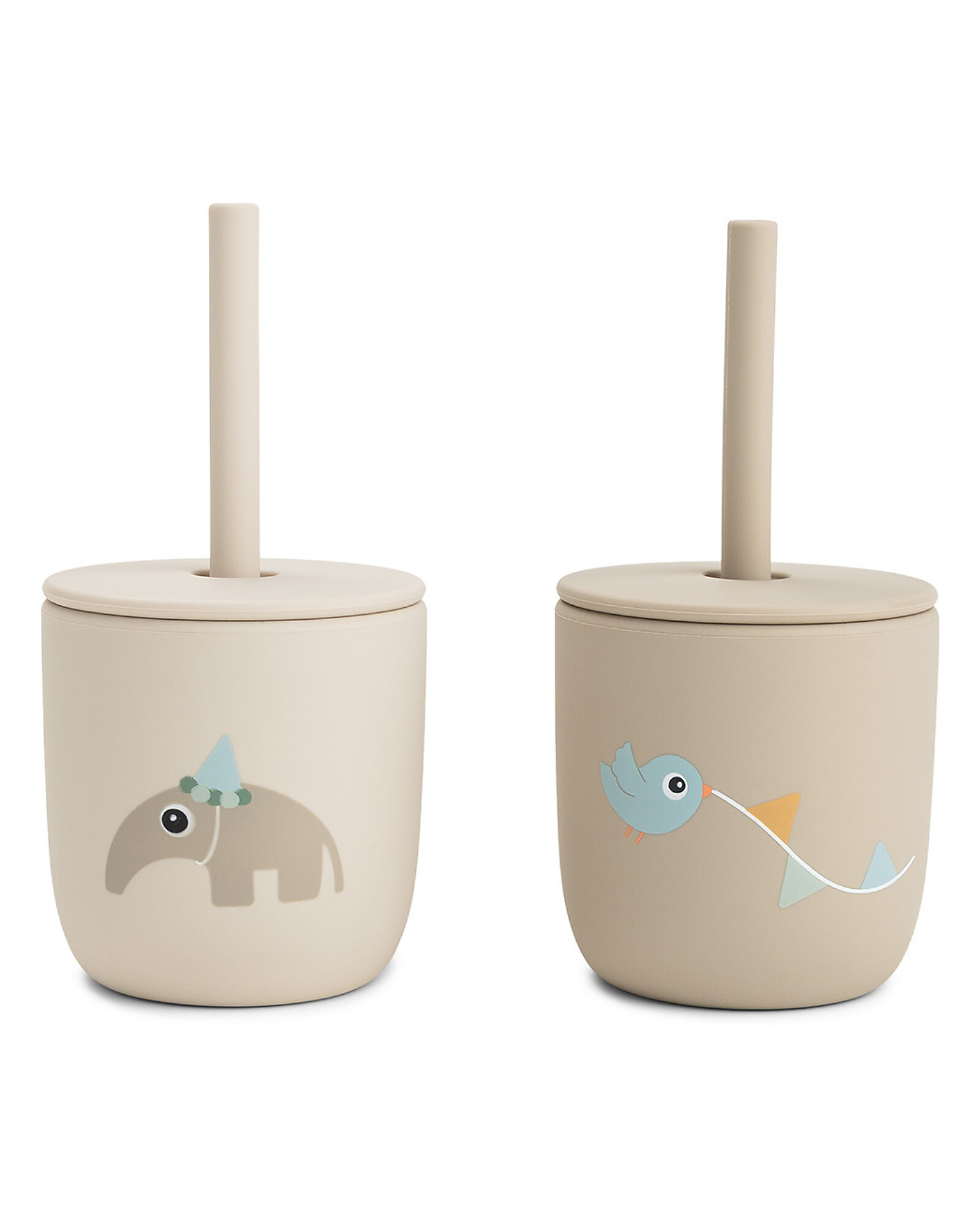 Set 2 Bicchieri con Tappo e Cannuccia 120 ml - Celebration - Sabbia - 100% Silicone Alimentare - 12m+