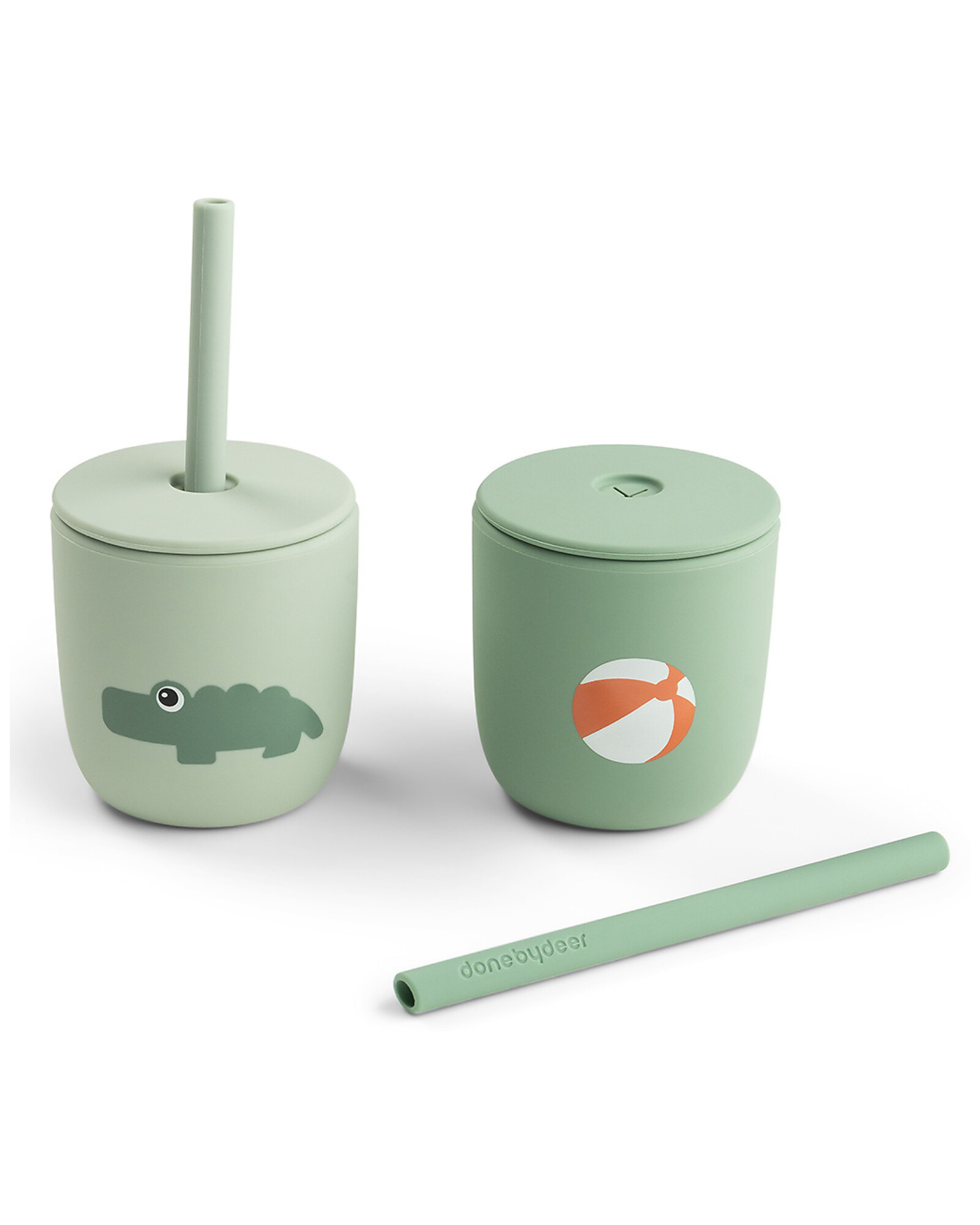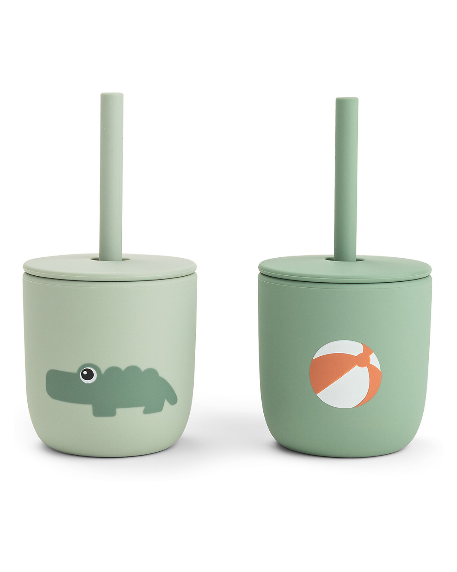 Set 2 Bicchieri con Tappo e Cannuccia 120 ml - Playground - Verde - 100% Silicone Alimentare - 12m+