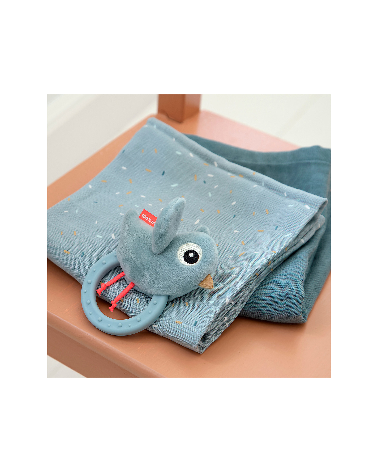 Lascia che il tuo piccolo giochi con questo sonaglio sensoriale blu con Birdee e guarda il tuo bambino esplorare gli elementi divertenti e divertenti.
