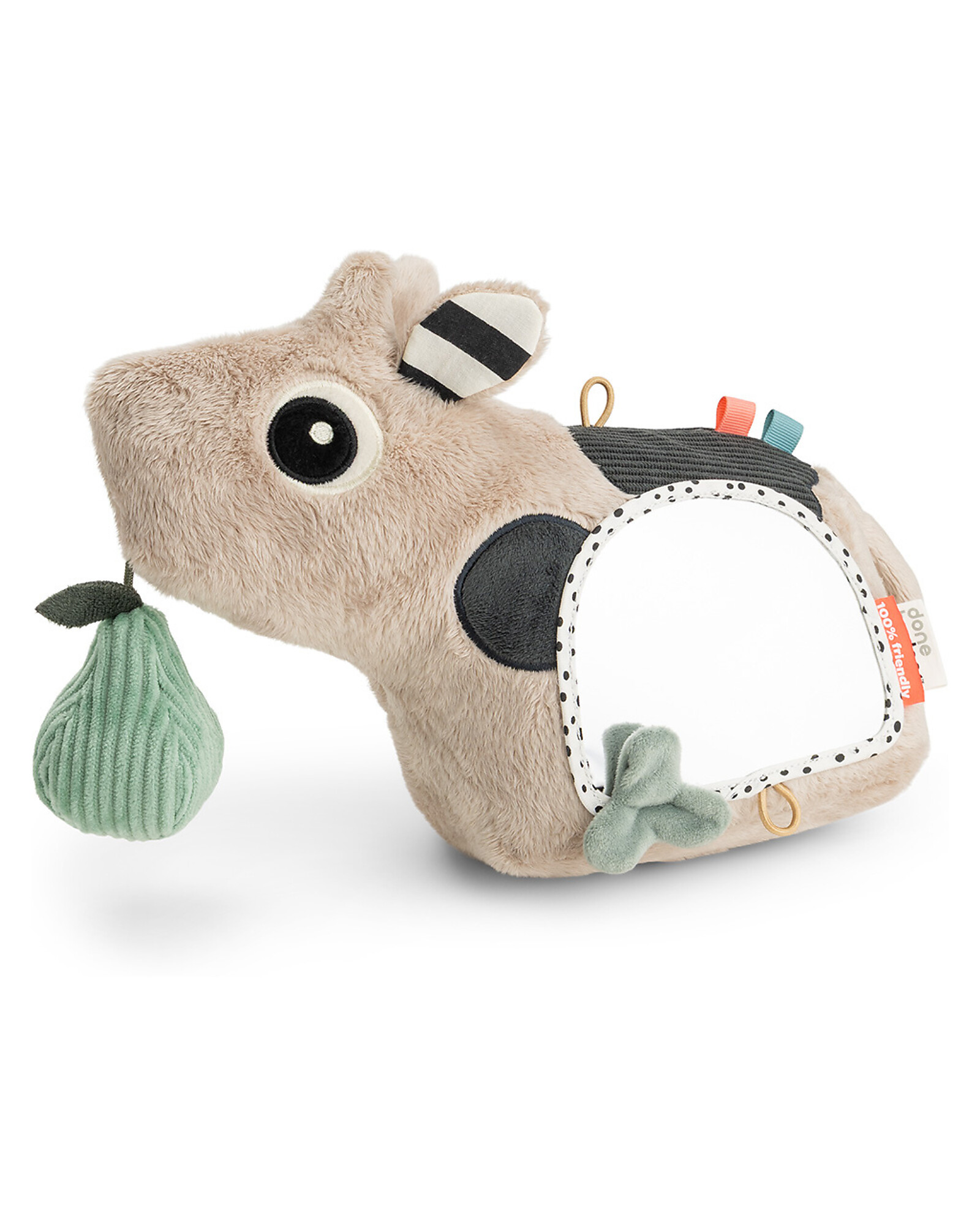 Lo Specchio Gioco Attività Multisensoriali è pensato per stimolare la curiosità e lo sviluppo del tuo piccolo. I dettagli sensoriali giocosi incoraggiano i bambini a raggiungere, afferrare ed esplorare, supportando lo sviluppo sensoriale attraverso la stimolazione tattile, uditiva e visiva. Lo specchio stesso stimola la curiosità e favorisce un auto-riconoscimento precoce, mentre i dettagli interattivi mantengono i più piccoli impegnati durante il gioco a pancia in giù, offrendo un'esperienza educativa e divertente. Un perfetto alleato per le prime scoperte del bambino!
