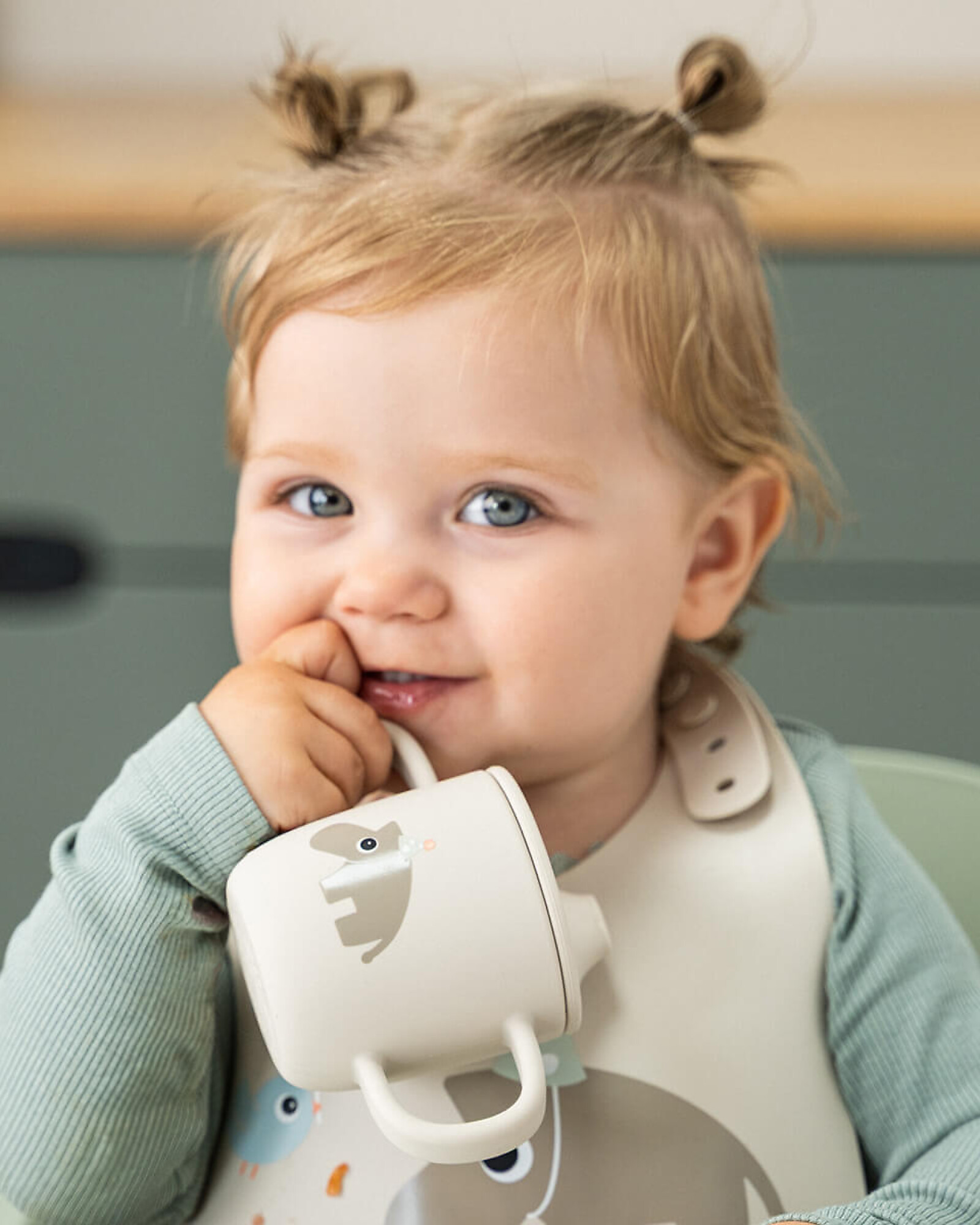 Quando la sete si fa sentire, il bicchiere con beccuccio di Done by Deer è perfetto per le piccole manine del tuo bimbo! Questo bicchiere è pensato per esercitarsi ai primi sorsi: grazie al doppio manico e il tappo con beccuccio il tuo bambino potrà imparare a bere come i grandi, e quando sarà pronto potrai togliere il tappo e usare la tazza come un normale bicchiere. E' realizzato in silicone alimentare, materiale antiscivolo, di facile presa ma sopratutto infrangibile. Bambini felici e genitori soddisfatti di un prodotto sicuro e di alta qualità, lavabile in lavastoviglie e utilizzabile in forno a microonde. Quale colore sarà il prescelto? Ricordati di abbinarlo agli altri articoli della Done by Deer: una tavola imbandita con tanto colore e piccoli amici animali, divertimento assicurato!