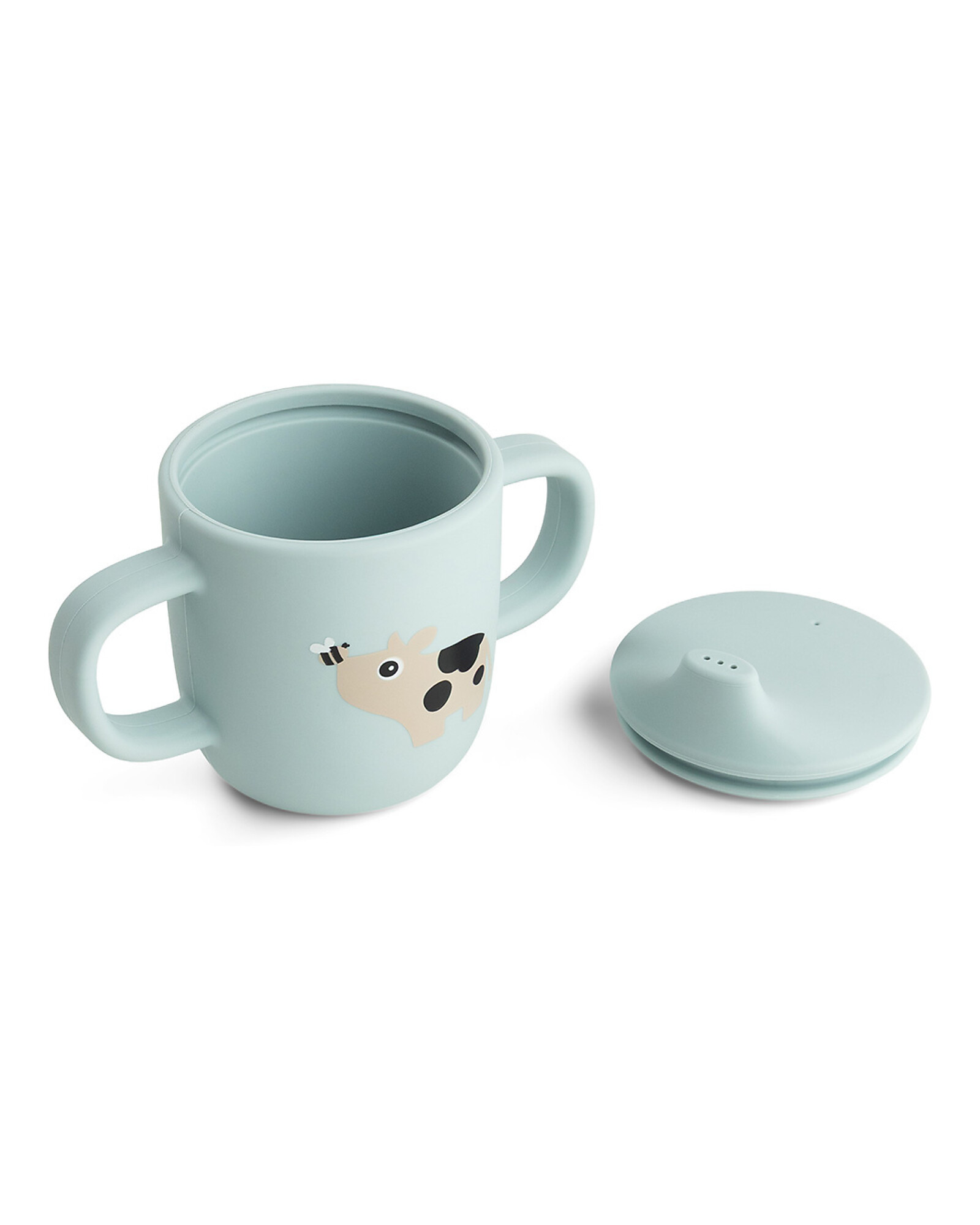Tazza con Beccuccio 120 ml - Tiny Farm - Blu - 100% Silicone Alimentare - con Due Manici