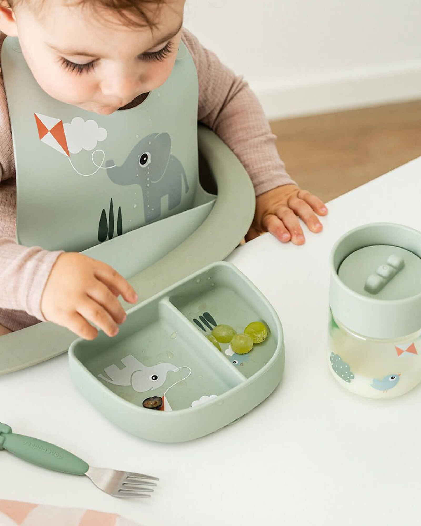 La Tazza da Apprendimento del marchio Done by Deer è il compagno ideale per il tuo piccolo nei suoi primi passi verso l'indipendenza. Con un design innovativo, questa tazza presenta un bordo per bere a 360°, che permette al bambino di bere da qualsiasi lato senza fuoriuscite grazie alla sua funzione antigoccia. Perfetta per i bambini a partire dai 9 mesi, la tazza ha una capacità di 260 ml ed è pensata per offrire una sorsata fluida e sicura grazie al suo bordo inclinato e al coperchio girevole che regola il flusso del liquido. Non è solo pratica, ma è anche un accessorio elegante per i pasti del tuo piccolo.