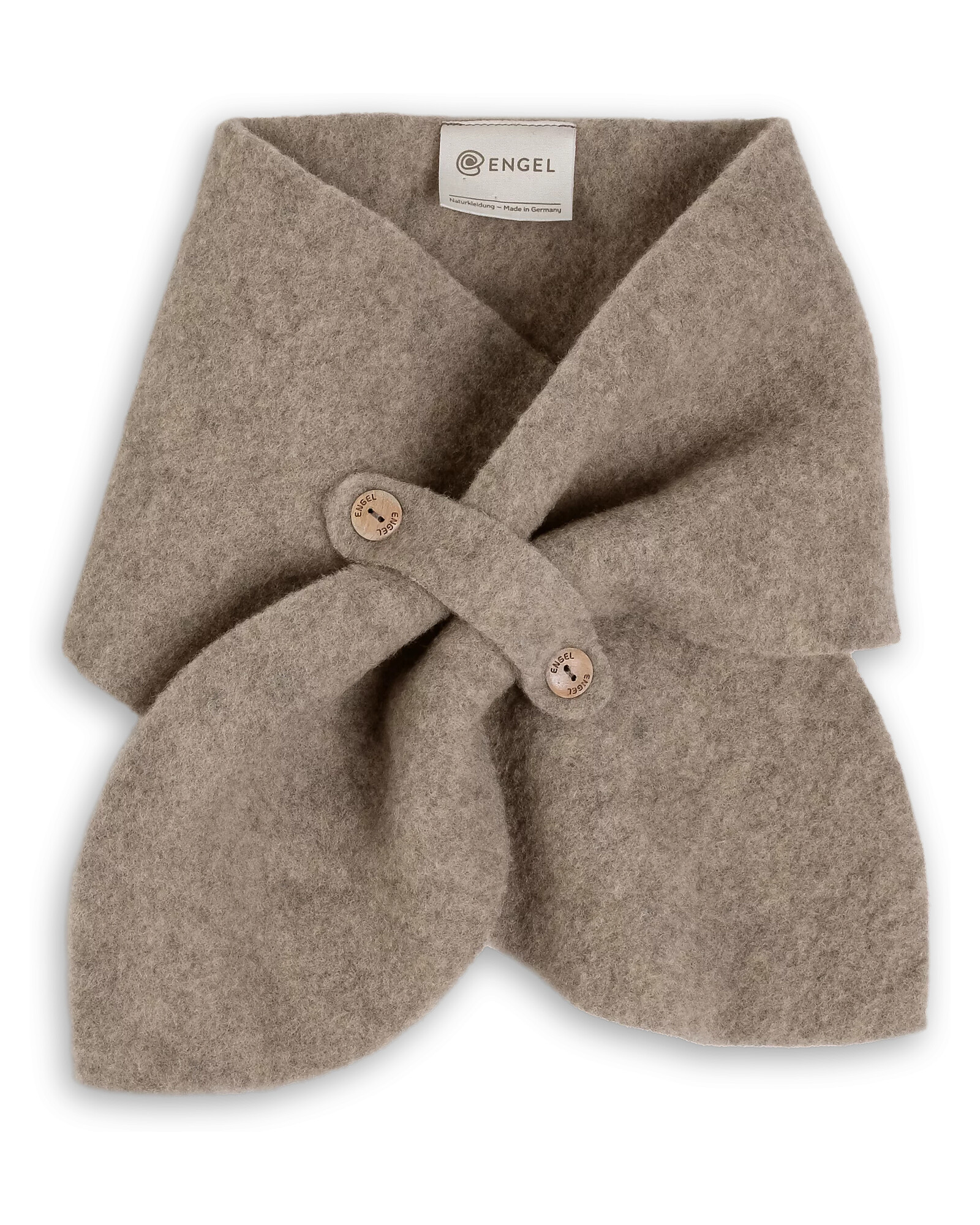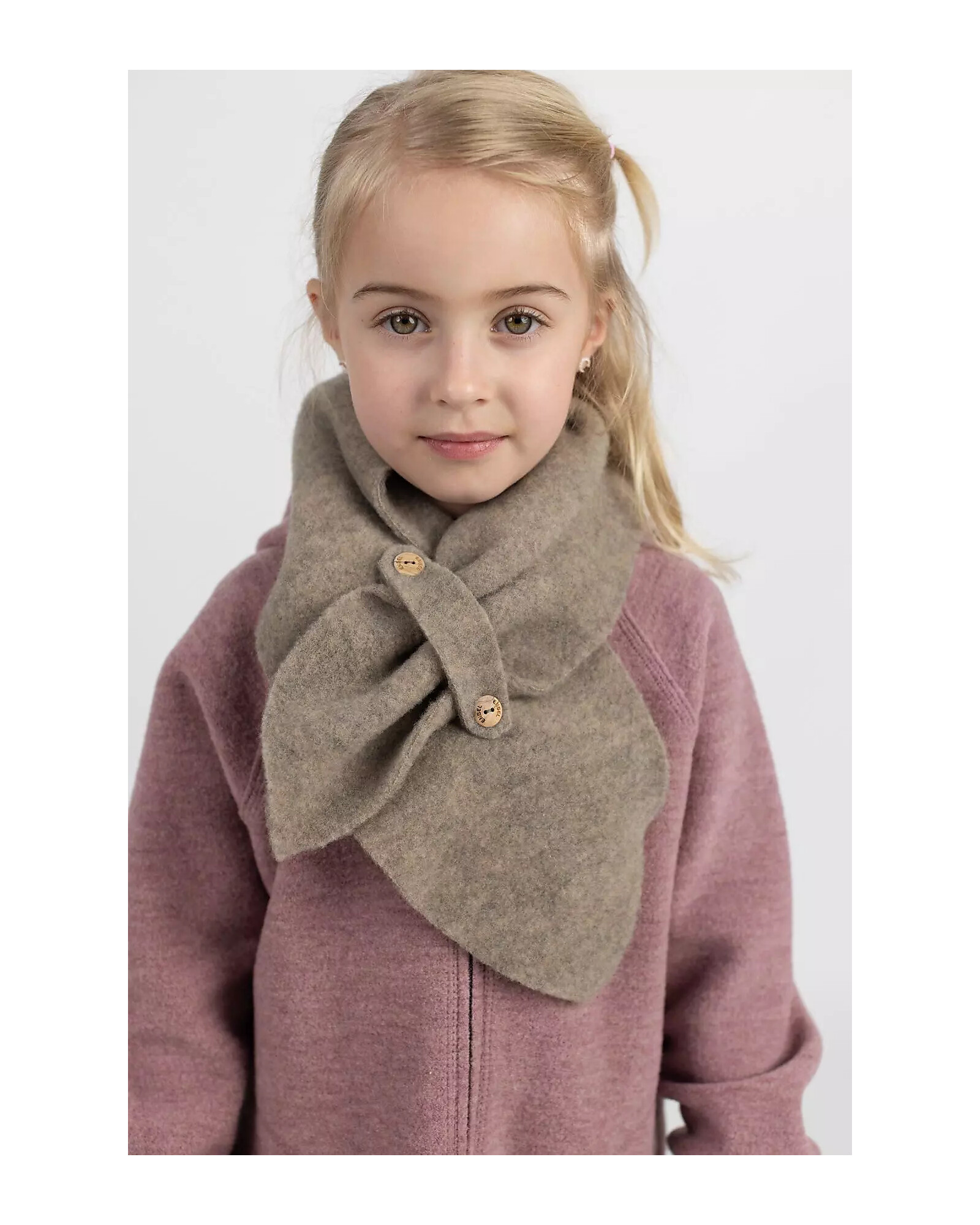 Sciarpa in Pile di Lana Bio - Noce Melange - Certificato GOTS e IVN BEST - con Passante e Bottoncini