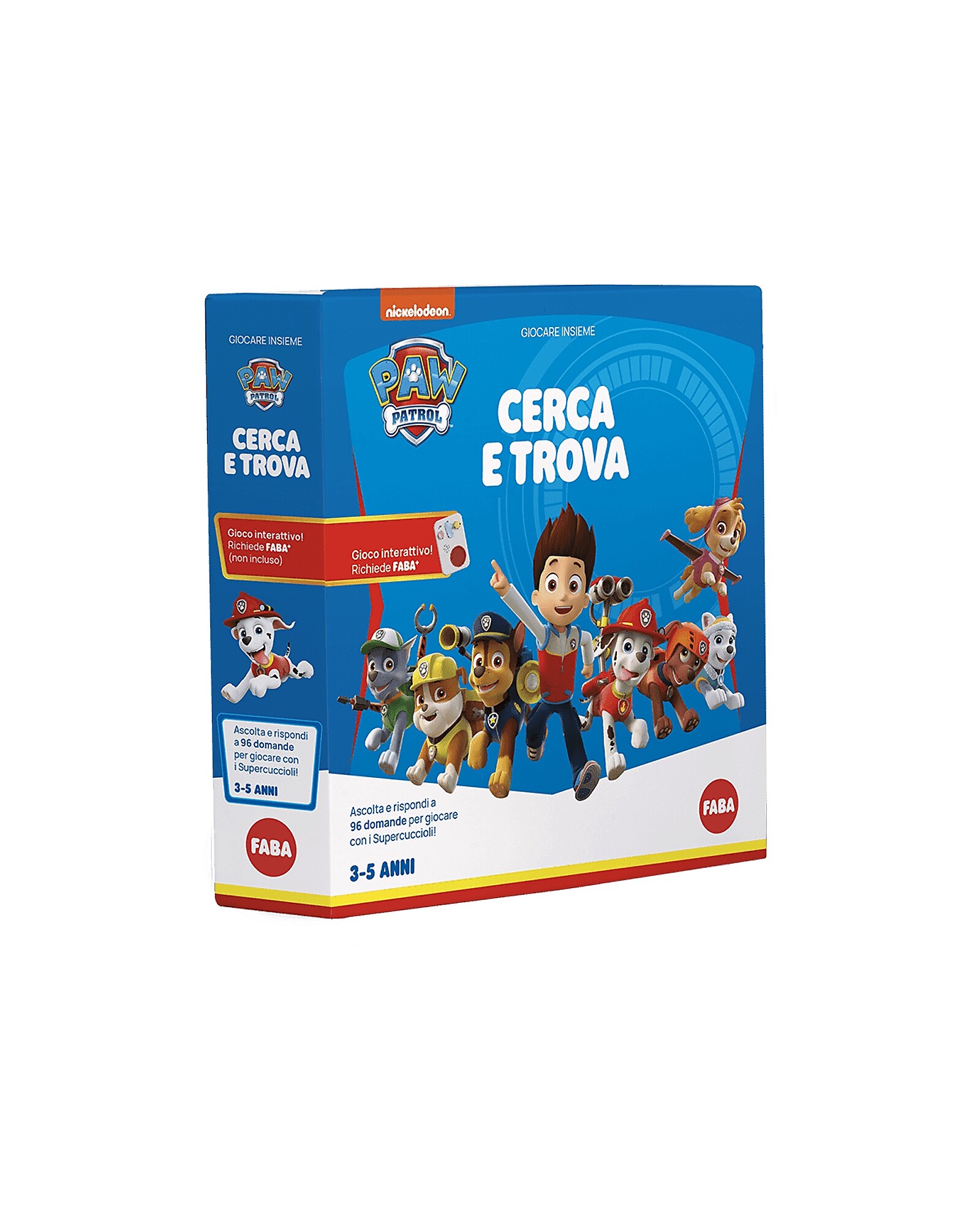 - Include: Un gioco interattivo dedicato al mondo dei Paw Patrol composto da 3 scenari gioco, 4 carte risposta e 96 domande da ascoltare per partite sempre nuove