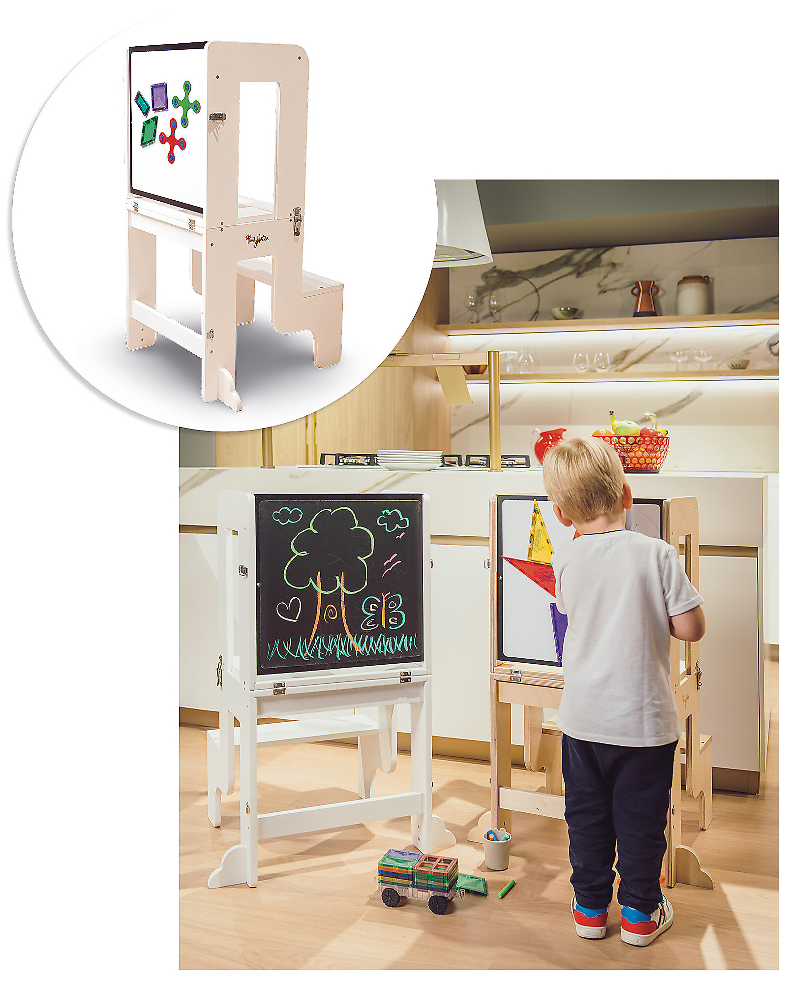 OUTLET Torre Montessori 3 in 1 - Bianco - Lavagna Magnetica e Convertibile in Tavolo+Sedia