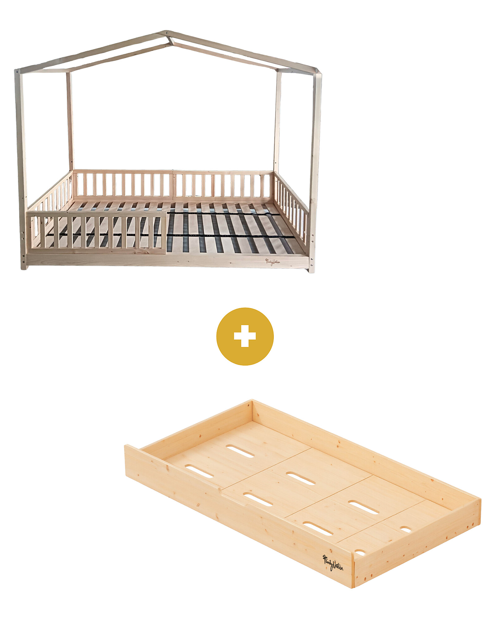 Il Letto Montessori Evolutivo Evi 4 in 1 e il Cassetto Contenitore 2-in-1 Evi sono due soluzioni intelligenti e salvaspazio progettate per accompagnare la crescita della tua famiglia, garantendo qualità, bel design e sostenibilità. Entrambe le componenti sono studiate per adattarsi alle esigenze in continuo cambiamento dei bambini, offrendo comfort, sicurezza e praticità.