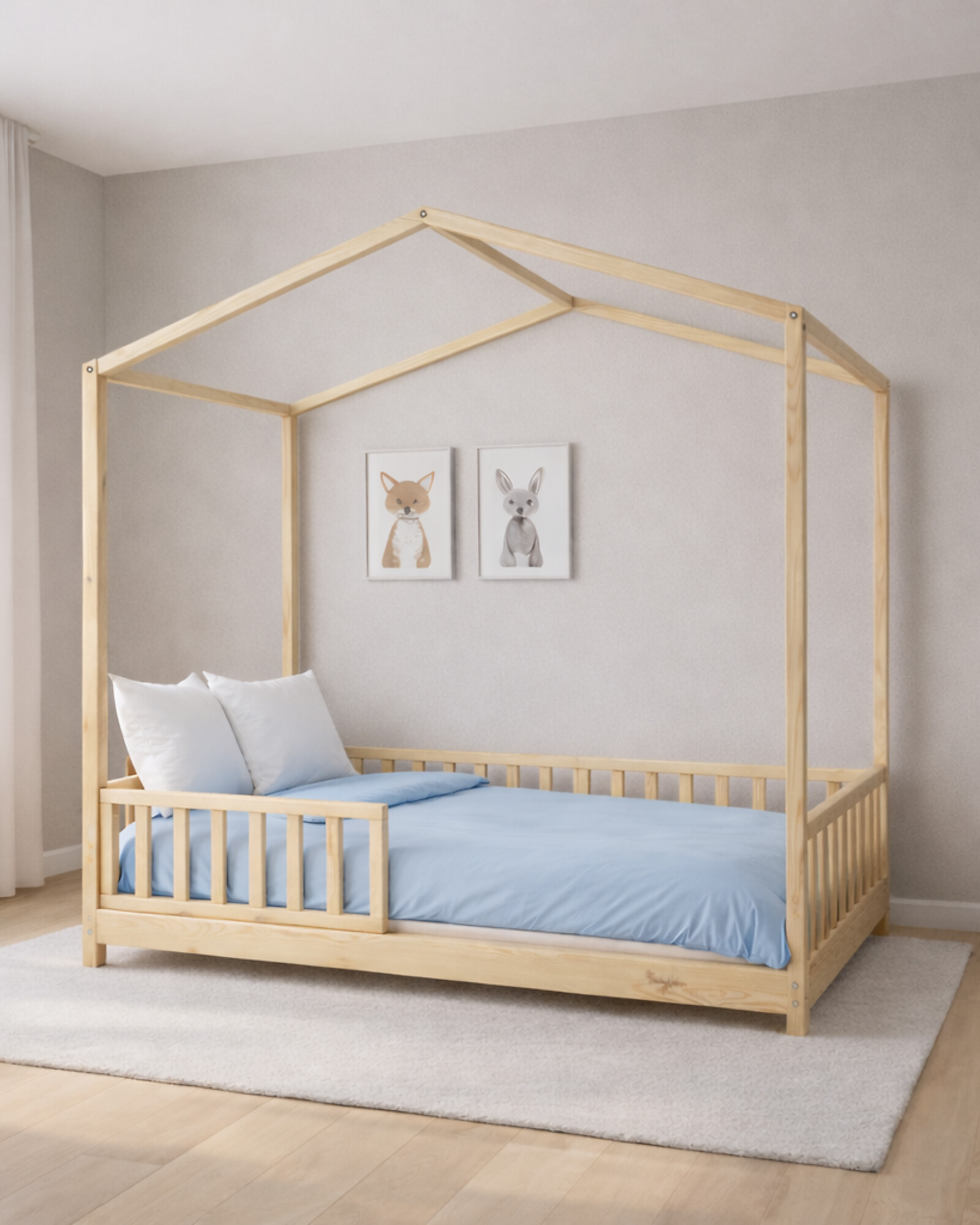 - Tutto incluso – Il kit comprende letto, sponde, tetto a casetta, doghe e gambe: nessun componente da acquistare separatamente. Pratico ed economico.