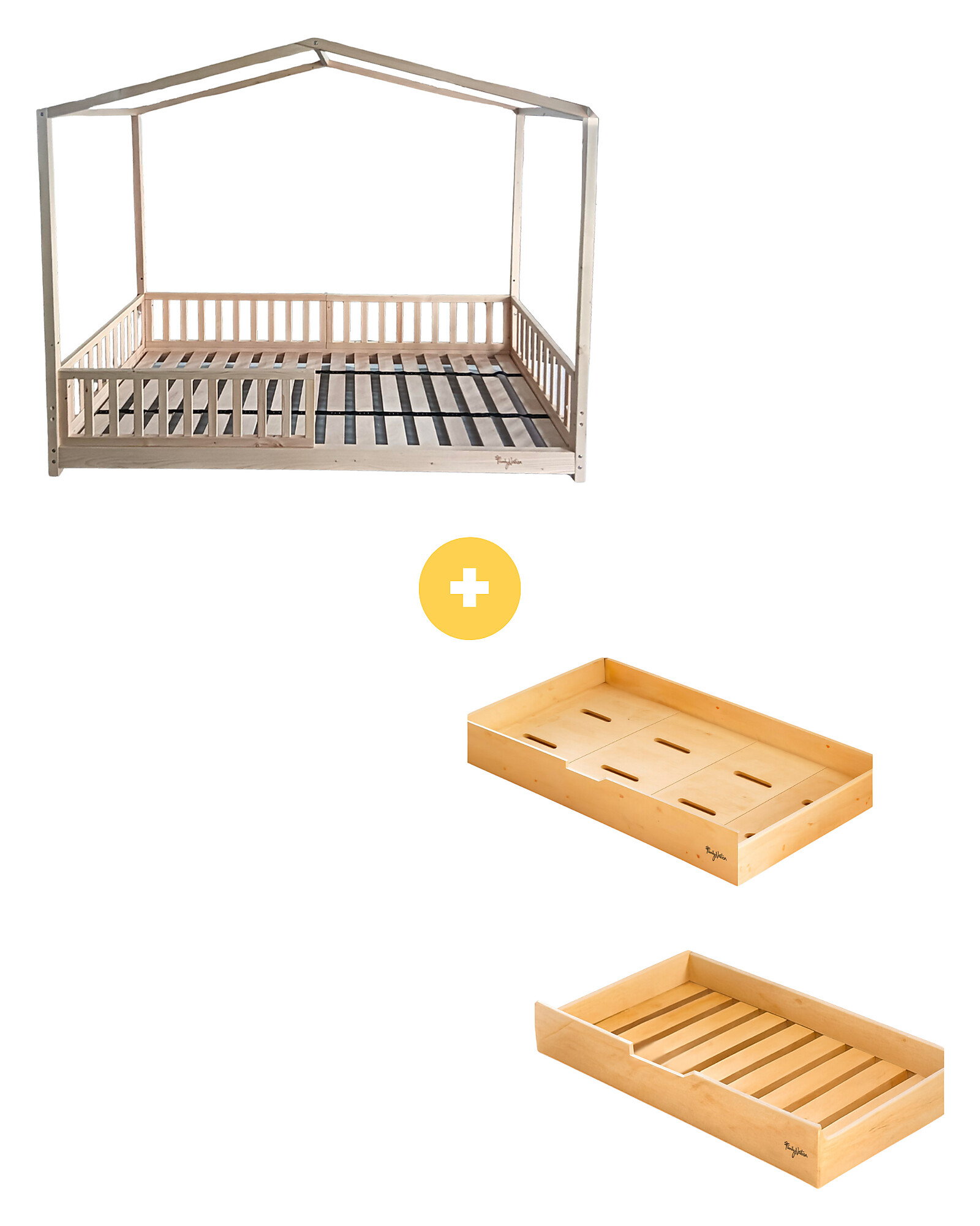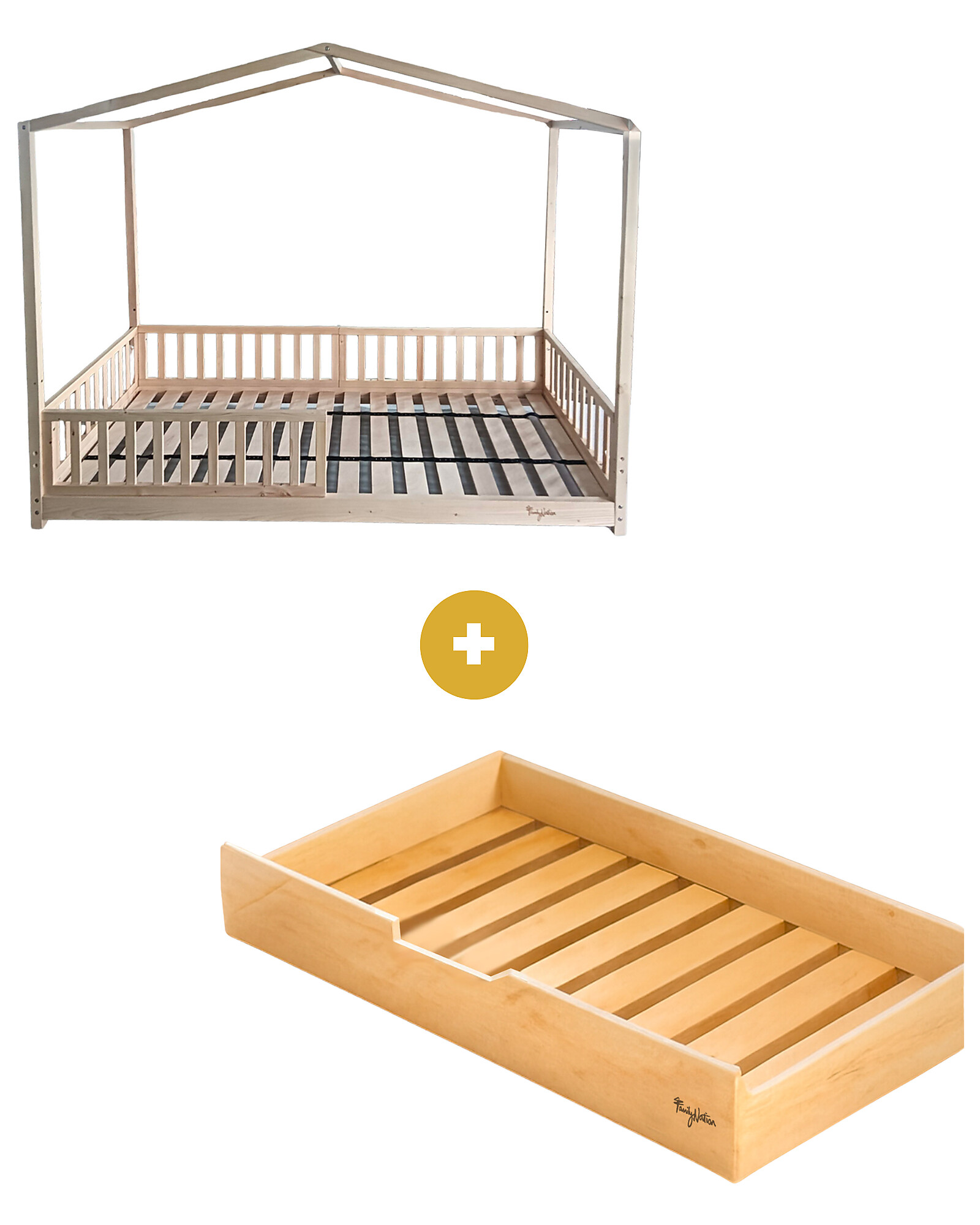 Set 2: Letto Montessori Evolutivo Evi 200x90cm + Letto/Cassetto