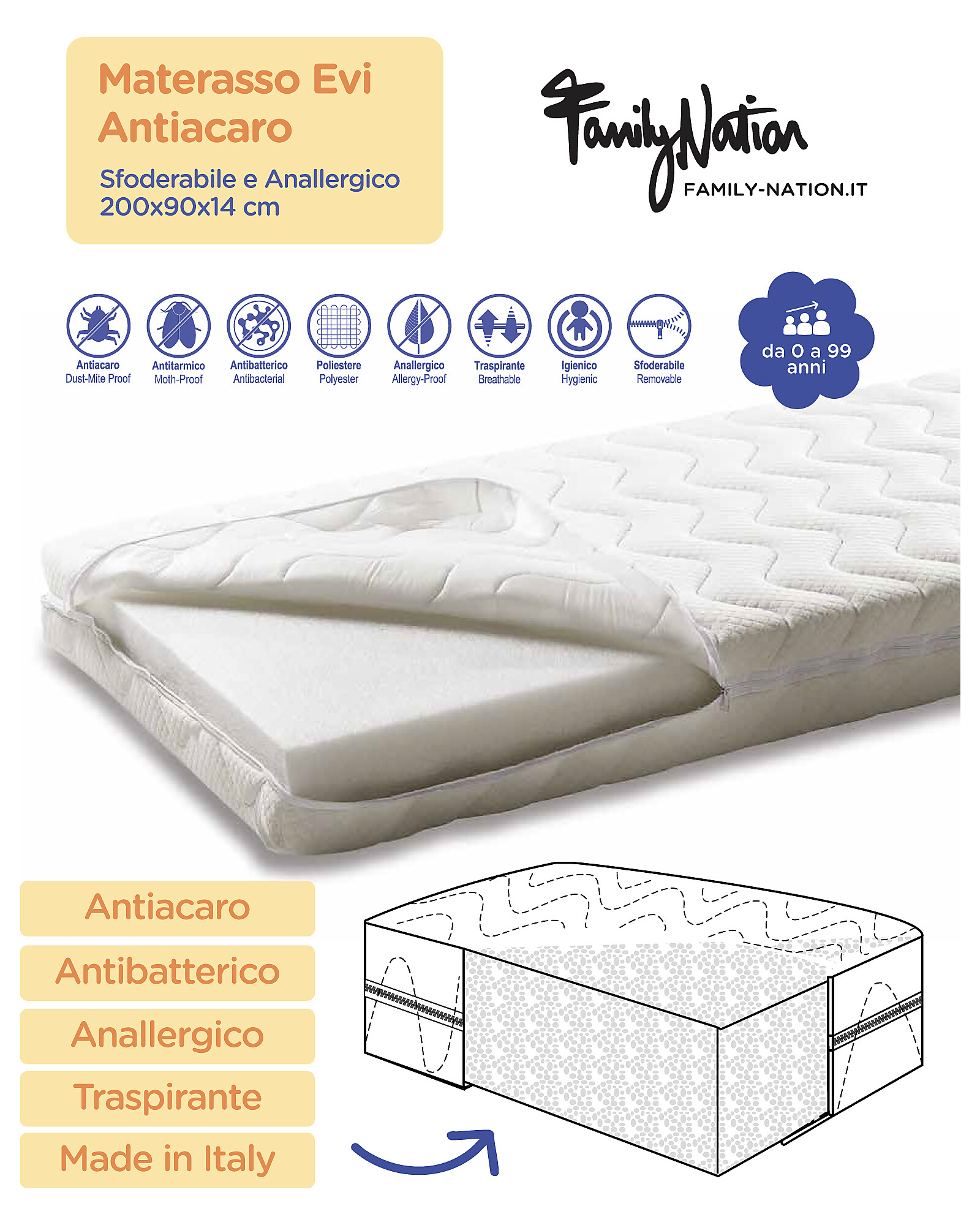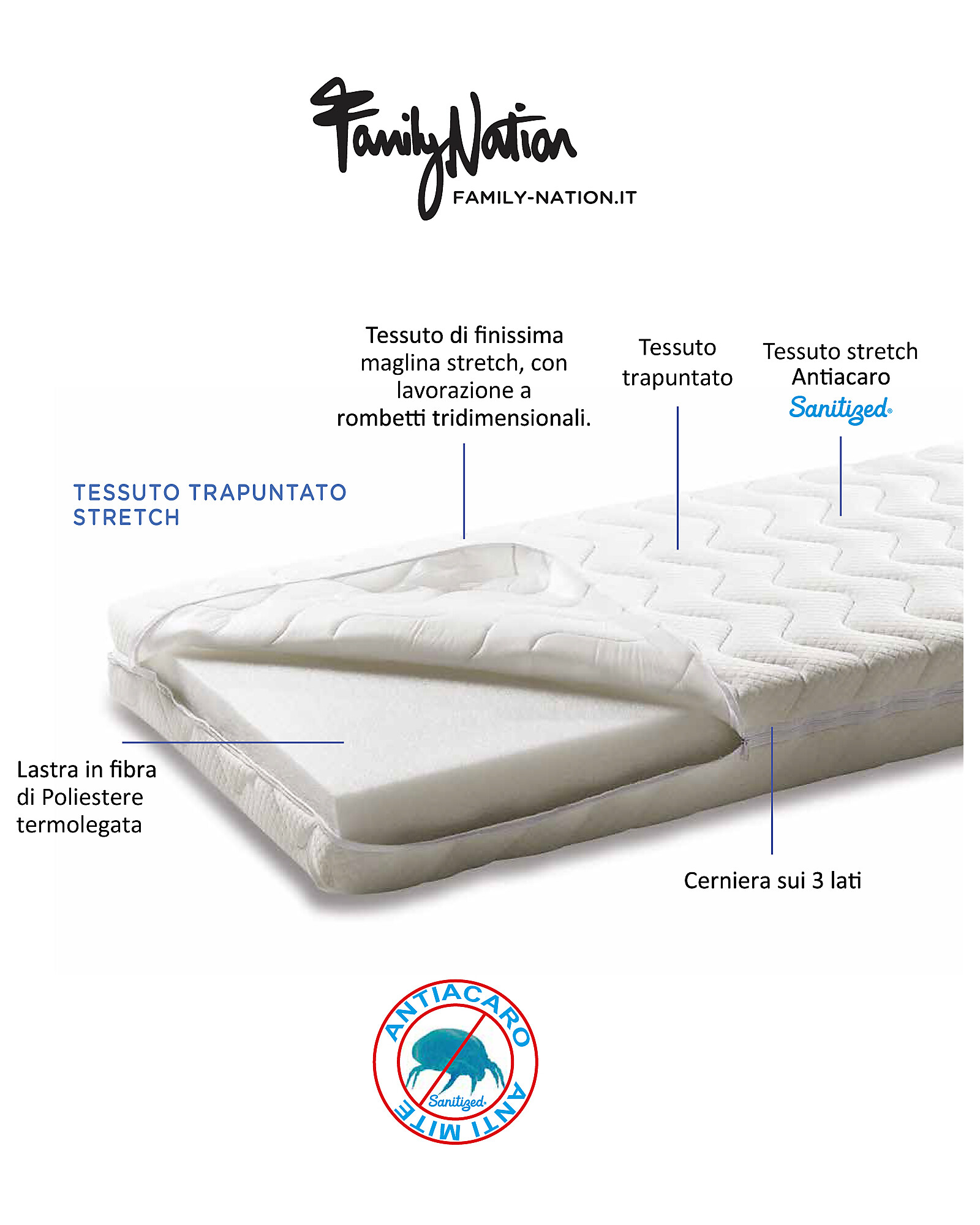 - Traspirante, antiacaro, antibatterico e anallergico