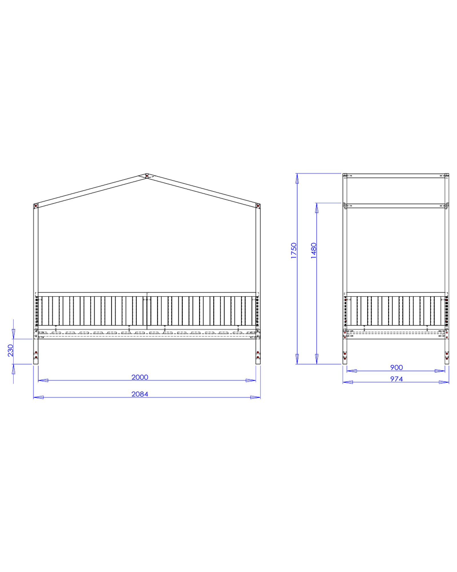 - Dimensione letto: 208,4 x 97,4 x 175 cm
