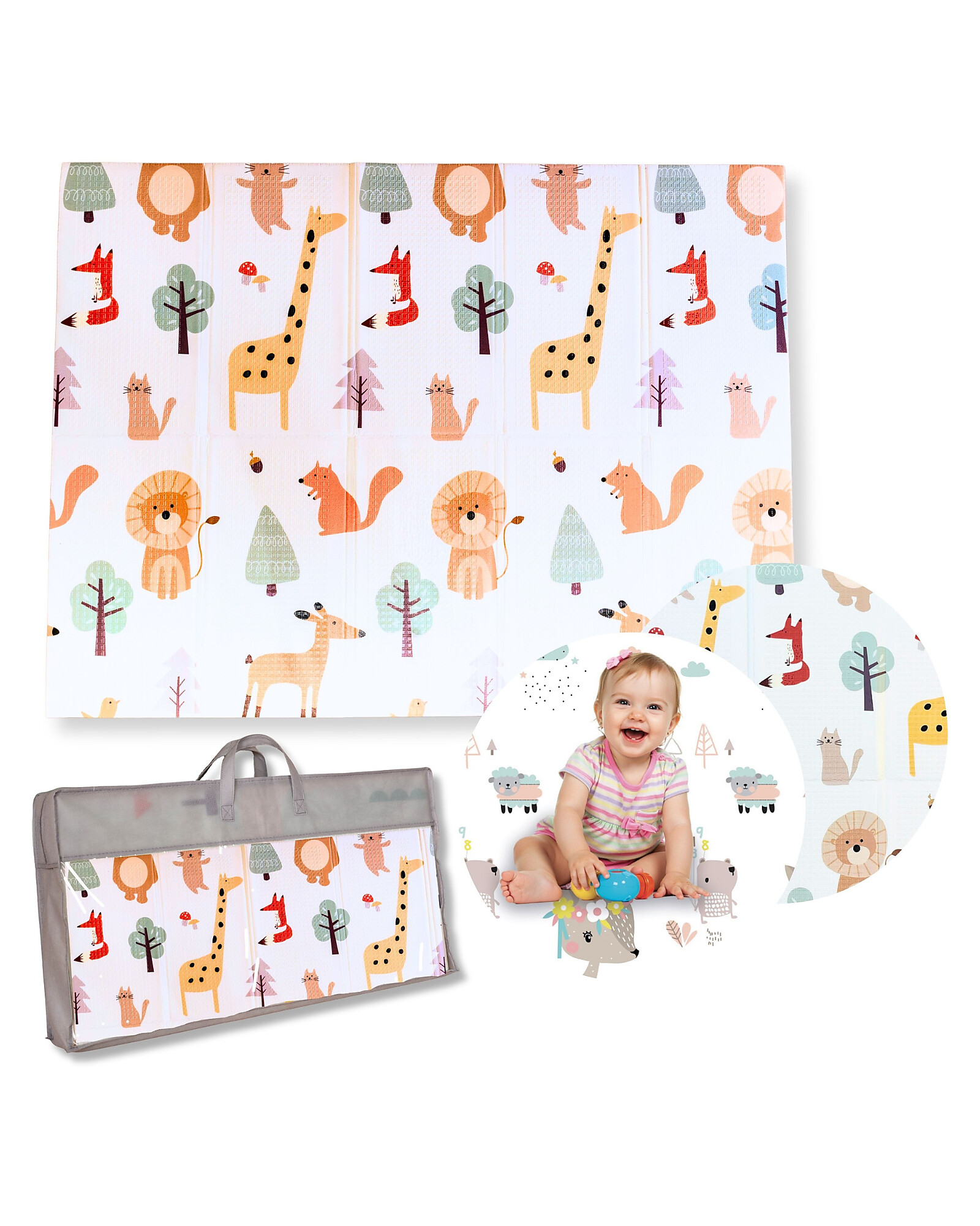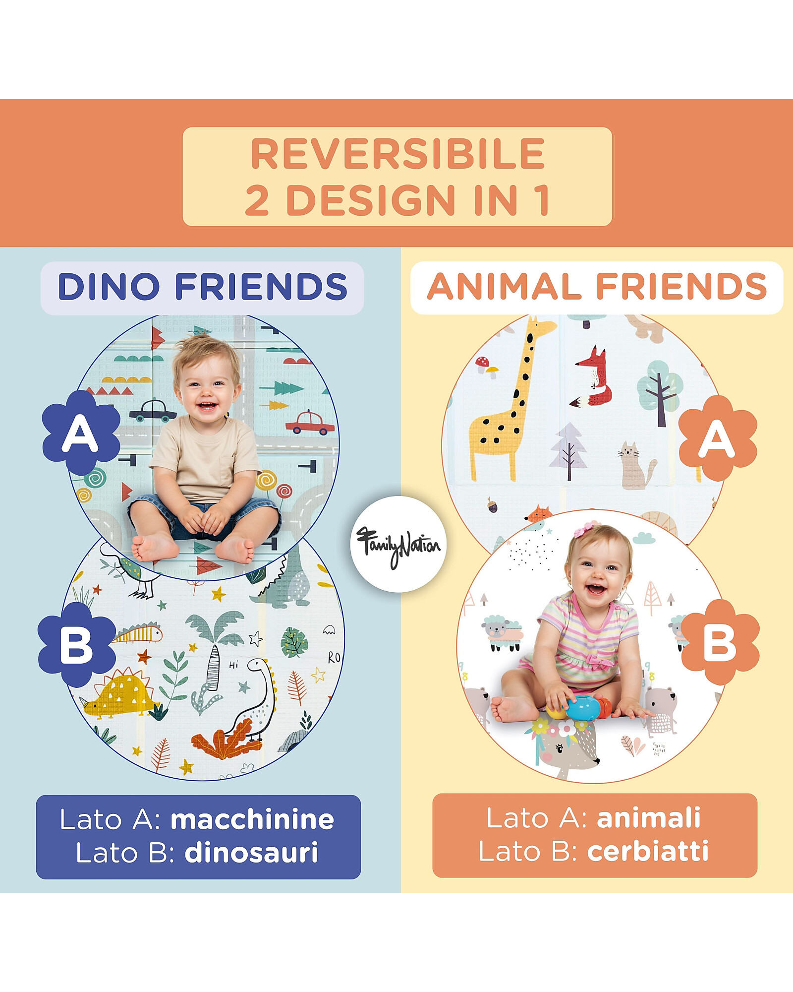 Tappeto Gioco Pieghevole Montessori 2 in 1 Reversibile e Morbido - Animal Friends - 180x150cm - dalla Nascita