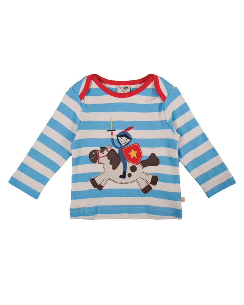 Maglia a Righe Bobby il Cavaliere - Blu con Applique - 100% Cotone Bio