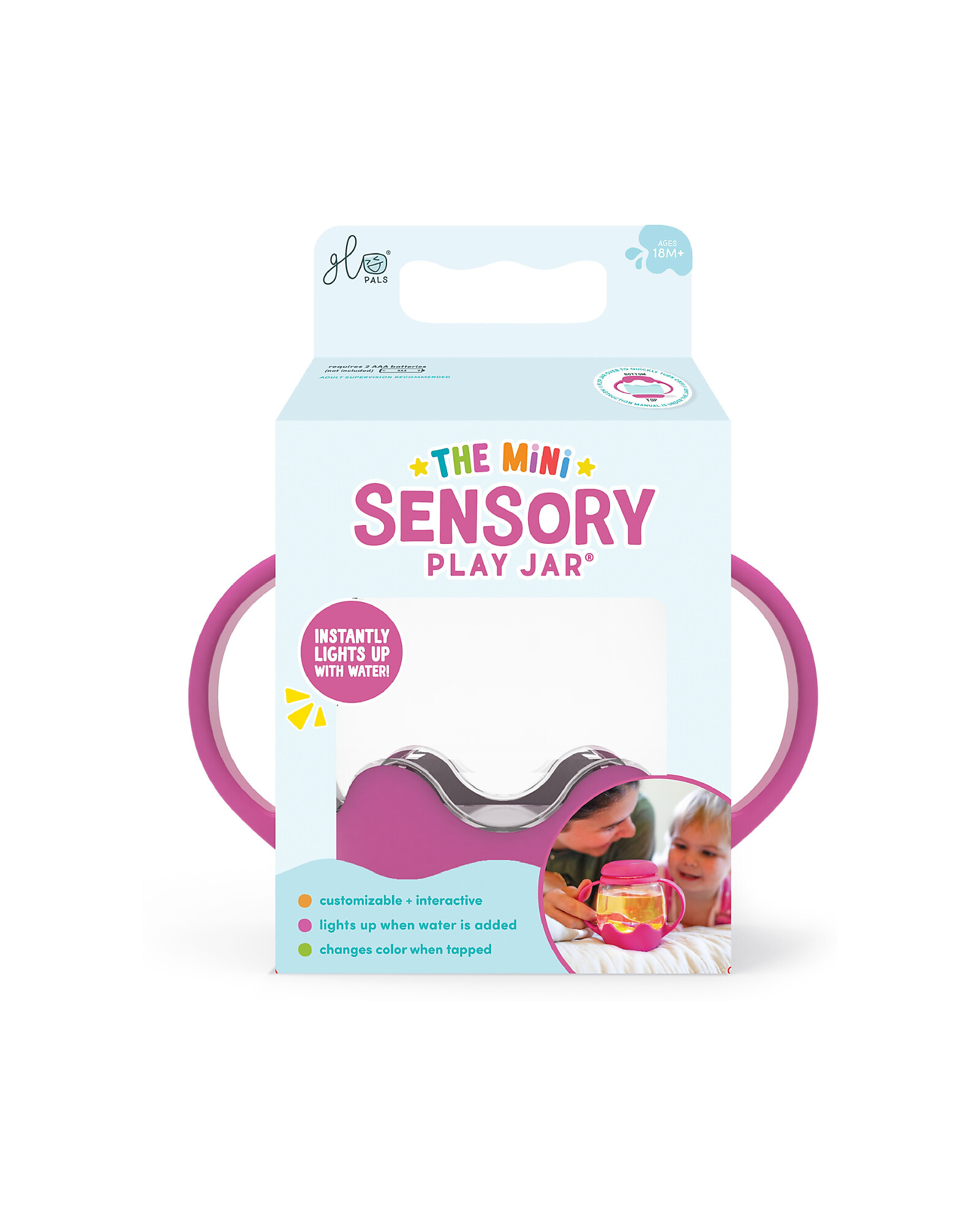 Il Barattolo per Gioco Sensoriale Glo Pals preferito dai fan, ora in versione MINI per le manine dei più piccoli! Da compagno di giochi per calmarsi, a compagno di viaggio o compagno di pigiama party, questo barattolo è progettato per seguirti ovunque ti porti il gioco. Aggiungi acqua di rubinetto e guarda il barattolo illuminarsi automaticamente, brillare e alternare 9 colori rilassanti. I più piccoli possono toccare per cambiare colore e il coperchio con chiusura a prova di fuoriuscita lo rende perfetto per giocare a casa o in viaggio.
