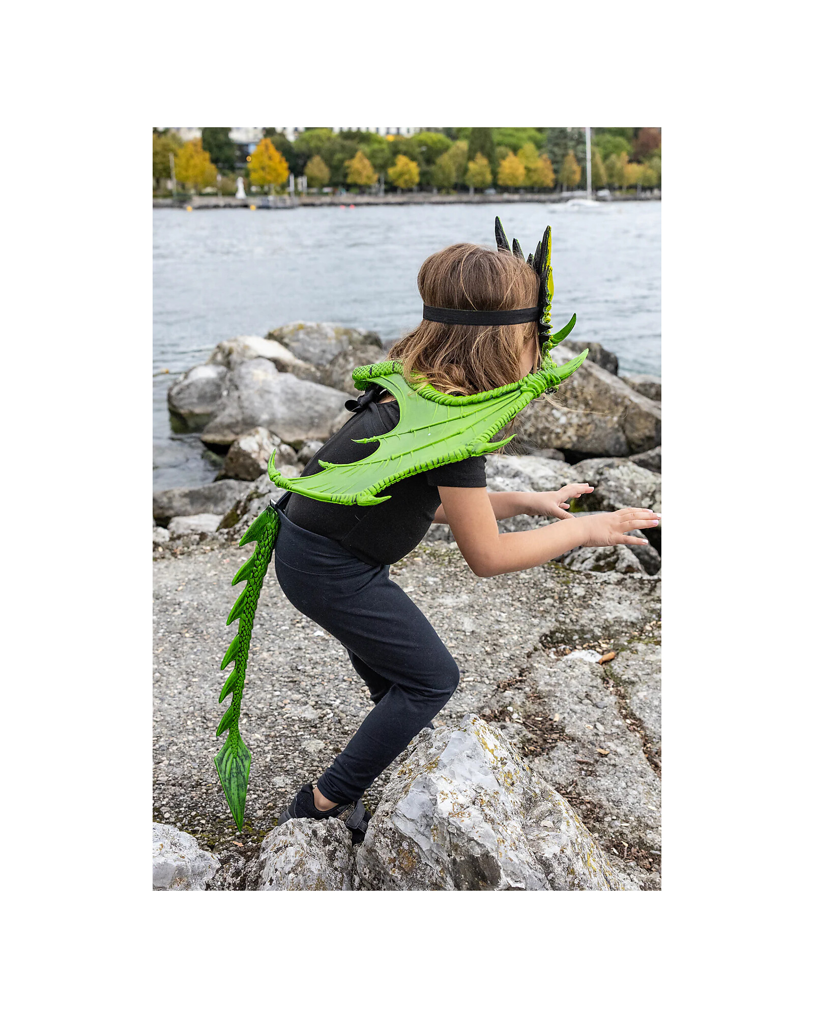 Attenzione piccoli cavalieri e amanti delle creature fantastiche: è arrivata una coda di drago verde pronta a trasformare ogni gioco in un’avventura magica. Facile da indossare grazie alla cintura regolabile in velcro, si fissa comodamente in vita e segue i movimenti del bambino durante il gioco.