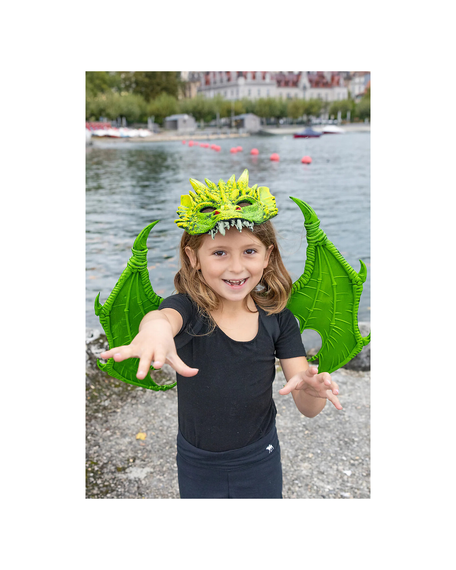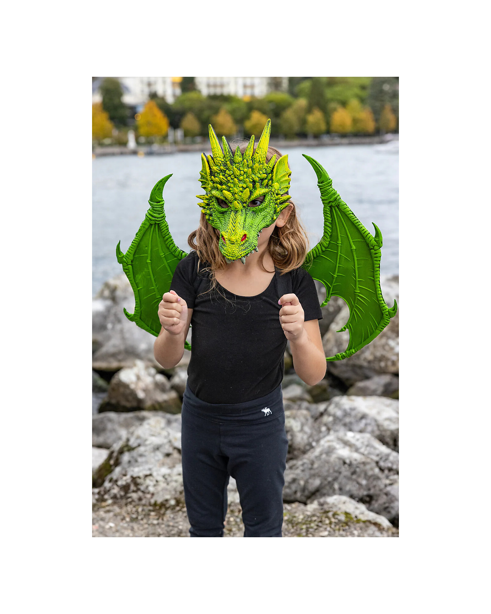 I dettagli ispirati alle creature fantastiche, insieme al colore verde intenso, rendono la maschera scenografica e riconoscibile, ideale per arricchire travestimenti e giochi di ruolo. Leggera e comoda, è pensata per essere indossata a lungo senza dare fastidio, lasciando il bambino libero di muoversi ed esprimersi.